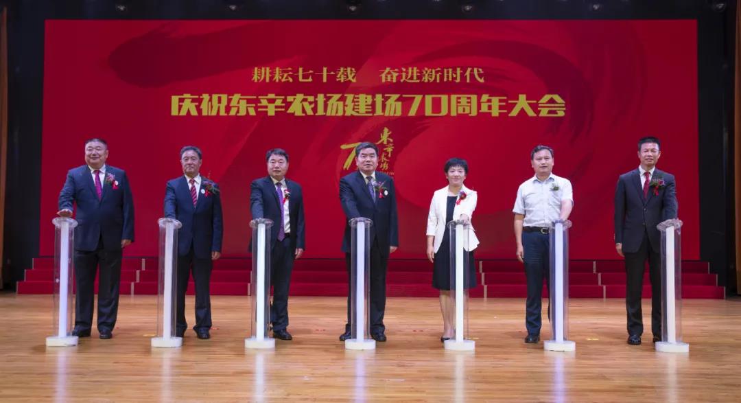 ? ? ? ?金色九月稻谷香,七十周年鑄華章,在這洋溢著豐收喜悅的美好時(shí)節(jié)里,東辛在文化活動(dòng)中心隆重舉行"耕耘七十載 奮進(jìn)新時(shí)代”慶祝東辛農(nóng)場(chǎng)建場(chǎng)70周年大會(huì)。省農(nóng)墾集團(tuán)公司黨委書(shū)記、董事長(zhǎng)魏紅軍、連云港市委副書(shū)記萬(wàn)聞華、省沿海開(kāi)發(fā)集團(tuán)公司副總經(jīng)理尤開(kāi)軍、連云區(qū)區(qū)委書(shū)記楊新忠、徐圩新區(qū)管委會(huì)主任趙厚峰、連云港市委宣傳部副部長(zhǎng)、市政府新聞辦主任 李超、連云港市總工會(huì)黨組書(shū)記、副主席丁維杰、連云港市文聯(lián)主席王詠梅、連云港市農(nóng)發(fā)集團(tuán)總經(jīng)理徐金鳳、灌云縣政協(xié)主席、黨組書(shū)記王慶嘉、日出東方控股股份公司董事長(zhǎng)徐新建、正大集團(tuán)農(nóng)牧食品企業(yè)中國(guó)區(qū)董事長(zhǎng)李瑞寒等領(lǐng)導(dǎo),以及農(nóng)場(chǎng)歷任老領(lǐng)導(dǎo)、老知青、墾區(qū)兄弟單位、駐場(chǎng)企業(yè)等和東辛農(nóng)場(chǎng)公司黨委領(lǐng)導(dǎo)班子成員、農(nóng)場(chǎng)公司、蘇墾農(nóng)發(fā)東辛分公司機(jī)關(guān)、社區(qū)、二三產(chǎn)業(yè)單位主要負(fù)責(zé)人、職工代表等500余人歡聚一堂,共敘過(guò)去,暢想未來(lái),共同慶祝東辛農(nóng)場(chǎng)建場(chǎng)70周年。