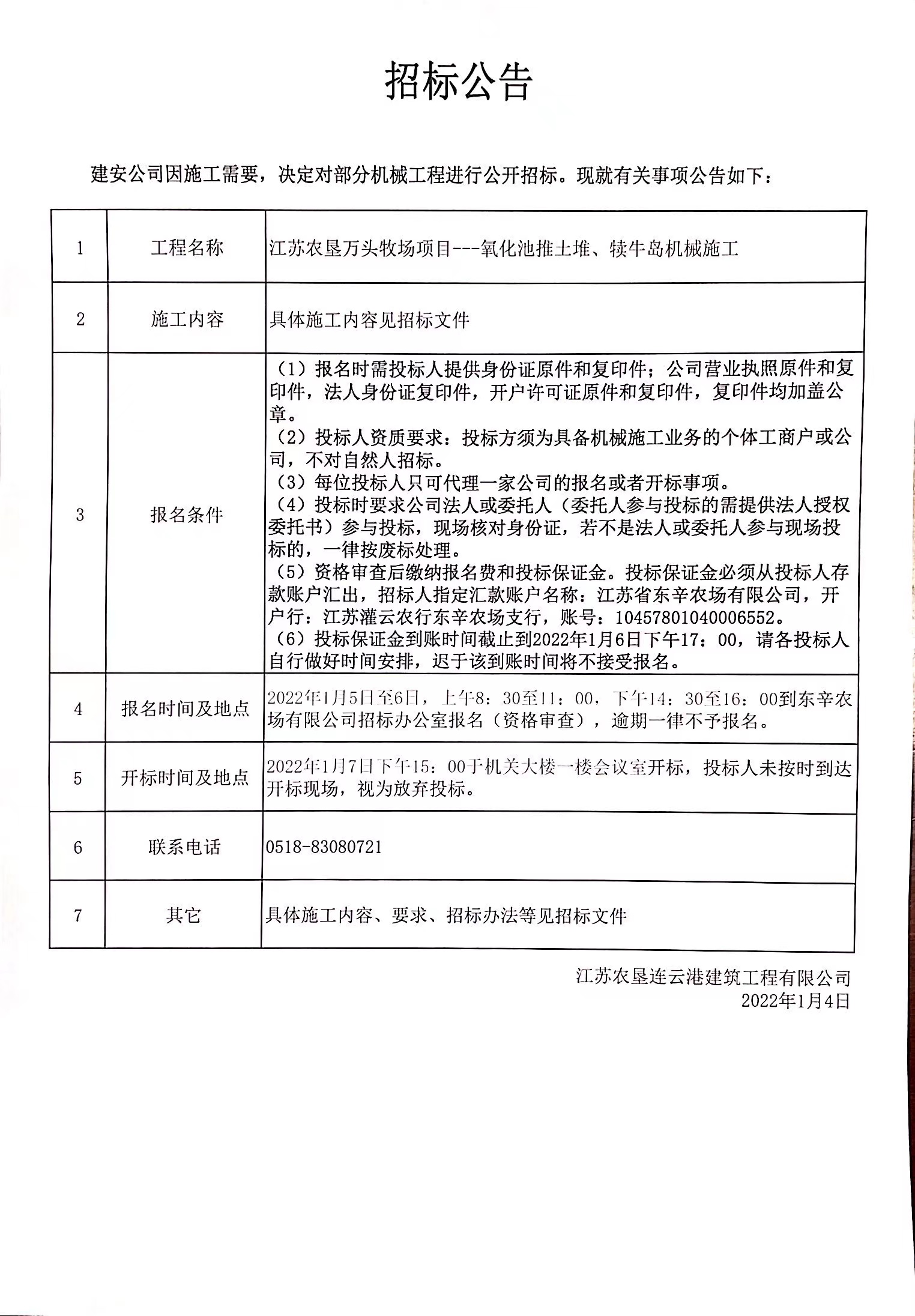 江蘇農墾萬頭牧場項目泌乳牛舍土建勞務施工 招標公告