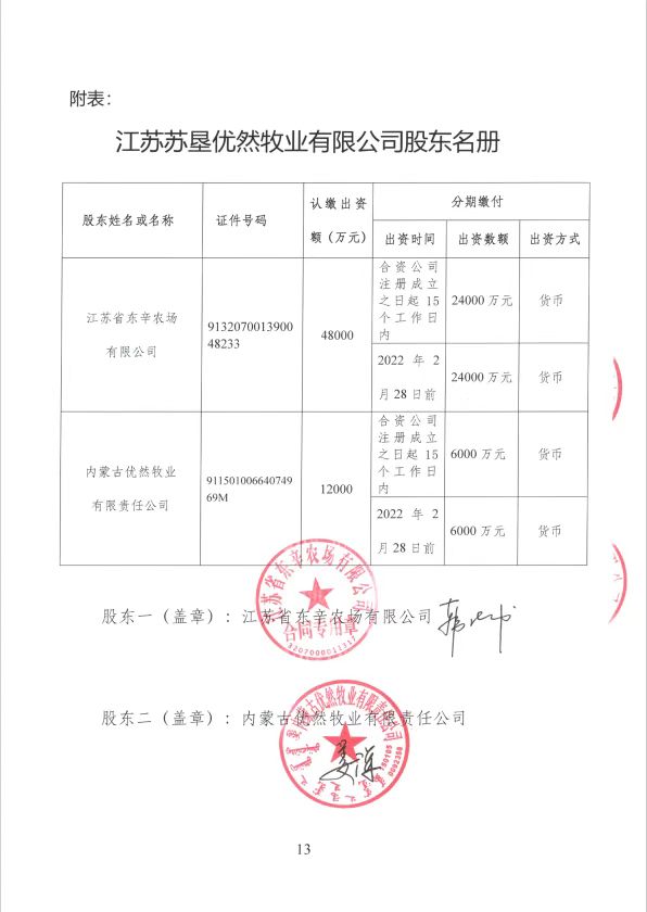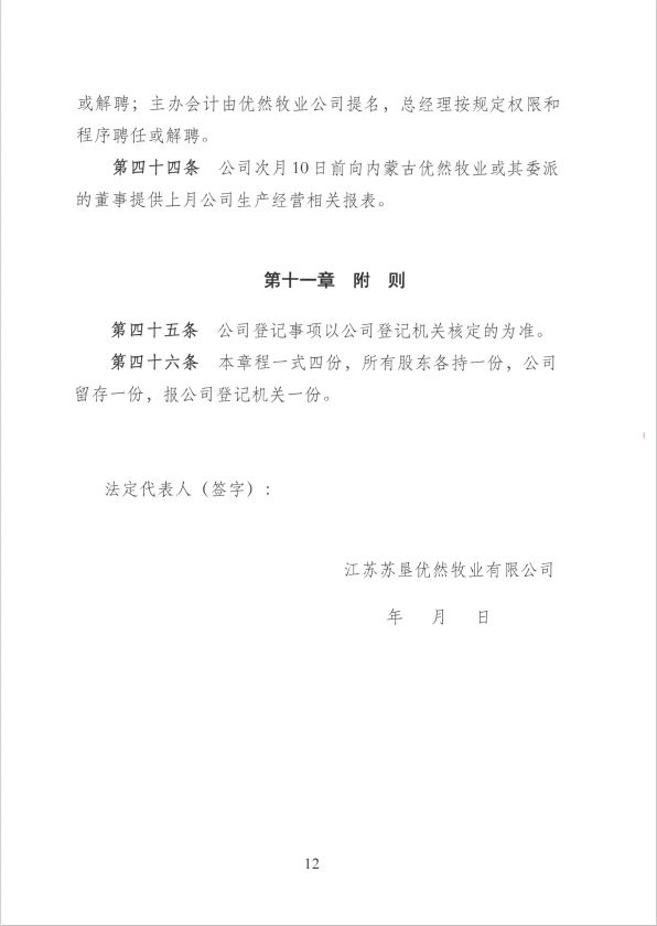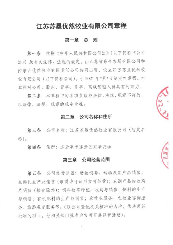 江蘇農(nóng)墾優(yōu)然牧業(yè)有限公司章程
