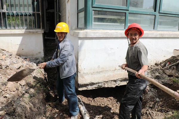 到達現(xiàn)場后,薛益德立即通知維修人員,迅速上報故障點位,緊急拉起警戒線,組織人員開始搶修,并用安全警示牌將管道堵塞點和吸污工作點圍起來,搶修人員手持鐵鍬一邊開挖工作坑,一邊進行排水,并用漏網(wǎng)和鐵鏟將管道里的結(jié)塊油污撈出。漆黑的夜晚,借助微弱的燈光,搶修人員穿著雨鞋浸在臟臭的泥水里,大家半蹲著進行割管、清理、連接,附近的一些居民主動加入了搶修工作,有的幫忙清理垃圾,有的幫忙遞工具,有的自發(fā)地從家中拿水給大家喝,有的從家中拿出探照燈給維修人員現(xiàn)場打燈......即使拖著疲憊的身體,忍受下水道刺鼻的氣味,但看到居民那期盼焦急中帶有關(guān)心的目光,大家已然顧不上辛勞,加快了搶修的速度,搶修現(xiàn)場一片緊張而又和諧的氛圍。經(jīng)過3個多小時搶修,夜晚11點半左右下水管道恢復(fù)了暢通,居民樓排水問題得以解決,大家紛紛為物業(yè)人員點贊!