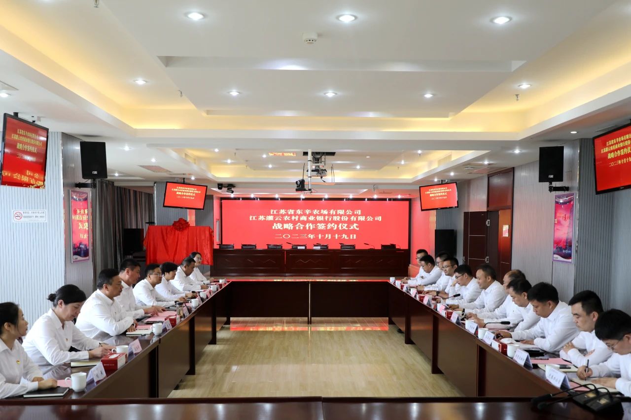 10月19日上午,灌云農(nóng)村商業(yè)銀行股份有限公司與東辛農(nóng)場有限公司戰(zhàn)略合作簽約儀式在灌云農(nóng)商銀行總行十樓會議室舉行。灌云農(nóng)商銀行黨委書記、董事長王良新,紀(jì)委書記、監(jiān)事長馬曉春、副行長蘇仕濤、李慶峰、鮑計寶、孫澤權(quán)、東辛黨委書記、董事長趙志、黨委副書記趙士利、紀(jì)委書記王芹、副總經(jīng)理戴祥、財務(wù)總監(jiān)匡洪萍等領(lǐng)導(dǎo)和相關(guān)部門負責(zé)人參加簽約儀式。