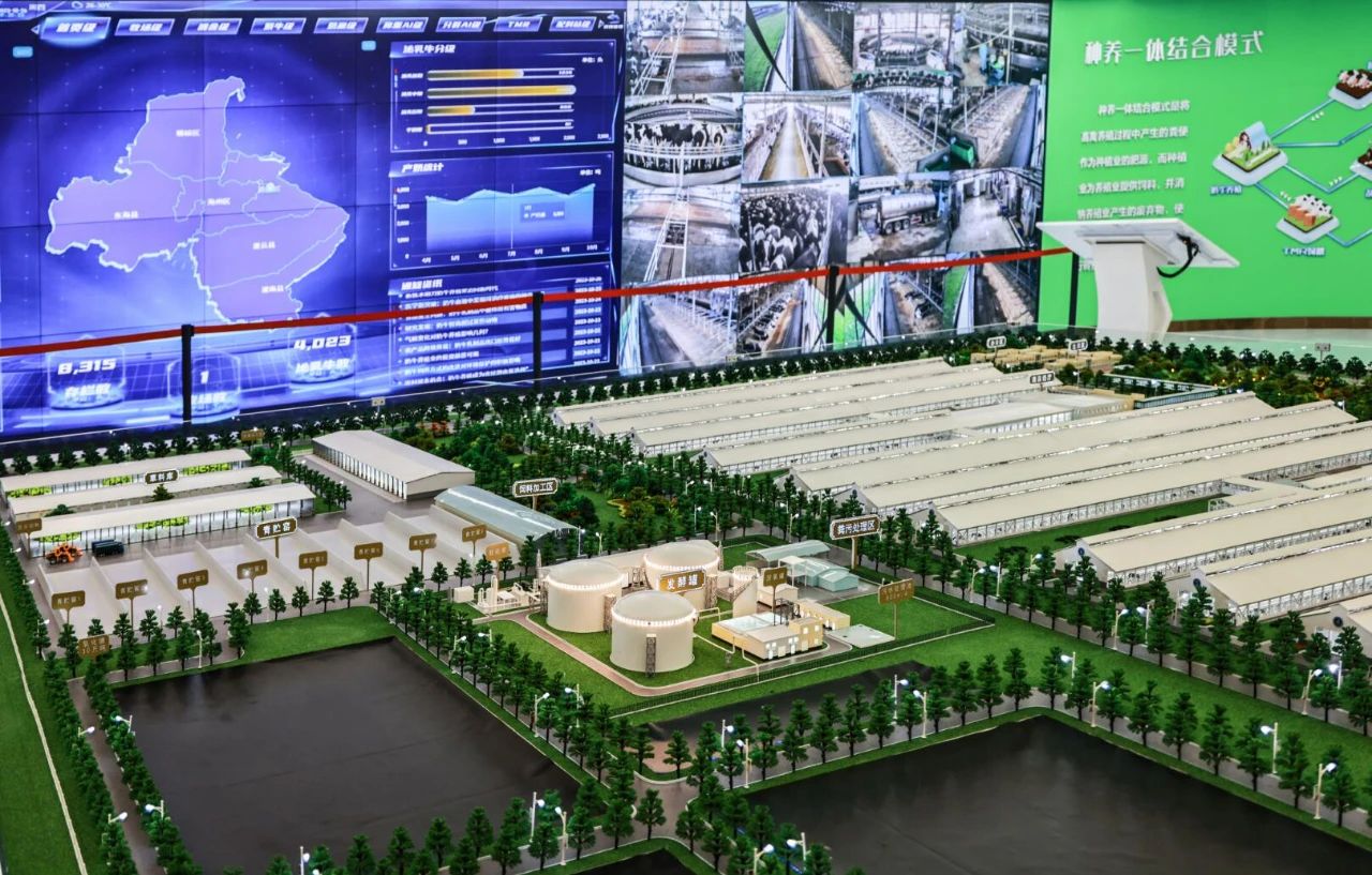 牧場牛舍中安裝環(huán)境溫濕度智能管控系統(tǒng),24小時動態(tài)感知牛群位置并實時反饋到系統(tǒng),根據(jù)牧場溫度、濕度、氨氣、二氧化碳、PM2.5等環(huán)境指標(biāo),依據(jù)閾值設(shè)置的參數(shù)自動控制風(fēng)機、水簾、通風(fēng)窗等設(shè)備的工作狀態(tài),實現(xiàn)自動通風(fēng)、噴淋、調(diào)溫,做到“即來即噴、即走即?!?,提高牛舍環(huán)境清潔度,降低奶牛發(fā)病率,實現(xiàn)對牧場內(nèi)小氣候的改造,將環(huán)境調(diào)整到適宜奶牛生長的狀態(tài)。同時安裝TMR 精準(zhǔn)飼喂設(shè)備和智能配料站,可采集飼喂監(jiān)管數(shù)據(jù)和記錄每一種原料的投料量,自動下發(fā)精準(zhǔn)率達98%以上的飼喂配方,打造牧場獨有的精料“中央廚房”。牧場智慧生態(tài)系統(tǒng)中,污水循環(huán)管理設(shè)備包含牧場污水管路3D圖與污水監(jiān)測點位信息,做到實時監(jiān)測牧場污水指標(biāo),并將數(shù)據(jù)同步上傳至環(huán)保局,確保牧場水質(zhì)監(jiān)管到位。沼氣發(fā)電系統(tǒng)將標(biāo)準(zhǔn)化工藝處理糞污產(chǎn)生的沼氣,用于發(fā)電后接入國家電網(wǎng),沼液利用后的沼渣作為奶牛牛床墊料的生產(chǎn)原料,不僅成本低,更大大降低了養(yǎng)殖風(fēng)險。同時在場區(qū)配備廢氣檢測設(shè)備監(jiān)測養(yǎng)殖氣體環(huán)境,配備消防監(jiān)控設(shè)備監(jiān)測飼草區(qū)與沼氣發(fā)電區(qū)域煙火狀況。智能生態(tài)系統(tǒng)采取糞污固體發(fā)酵、沼氣烘干回床、沼液還田方式,實現(xiàn)“變廢為寶”。對牧場糞污發(fā)酵后的液位進行采集,經(jīng)過無害化處理后的沼液通過預(yù)設(shè)專用管道,在卷盤式噴灌機的運轉(zhuǎn)下自動噴灑在專屬消納用地的田間作物上,形成種養(yǎng)一體循環(huán),有效提高了糞污綜合利用水平。從奶源上開始打造智能化牧場是一個正在發(fā)生的大趨勢,不僅能夠提高企業(yè)運營效率、增加營收,從整個奶業(yè)的角度看,更能夠加速聯(lián)通上下游產(chǎn)業(yè)環(huán)節(jié),為未來的智慧牧場的擴展帶來更多可能。大數(shù)據(jù)、物聯(lián)網(wǎng)、人工智能等多種數(shù)字技術(shù)的運用推進了智慧牧場的標(biāo)準(zhǔn)化生產(chǎn)、集約化經(jīng)營和資源高效利用,一套完整的智慧牧場系統(tǒng)也打通了信息通路,助力打造蘇墾優(yōu)然數(shù)字牧業(yè)發(fā)展新高地。