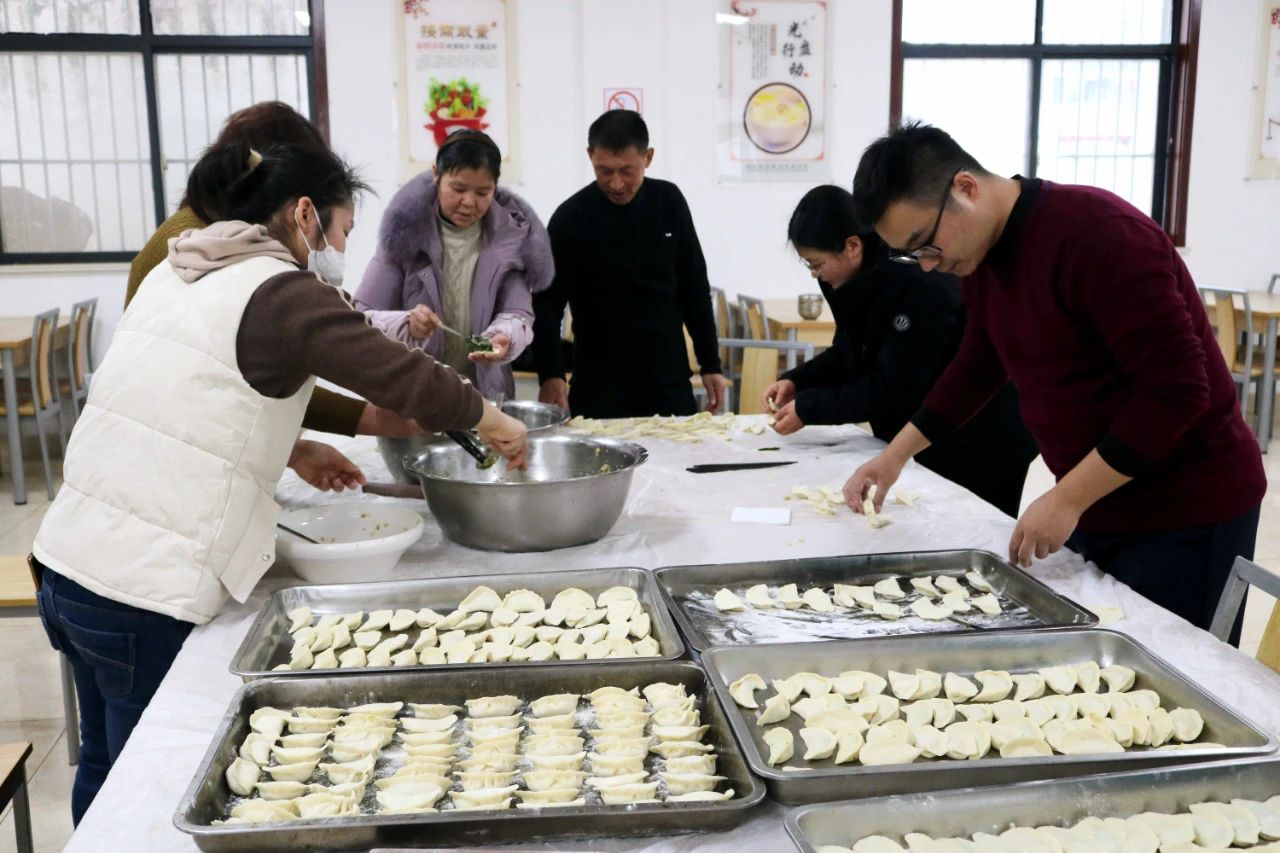 活動現(xiàn)場,大家圍在一起,挽起衣袖,分工協(xié)作,有的揉面,有的搟皮,有的包餡,切磋著手藝,交流著技巧,互相了解各民族的語言和風(fēng)俗習(xí)慣,期間還穿插著燈謎競猜活動,在歡聲笑語中,一盒盒極具特色、形態(tài)多樣的餃子整整齊齊排列開來。一盤盤熱氣騰騰的餃子端上餐桌,大家圍在一起吃餃子、話家常、說變化,其樂融融。