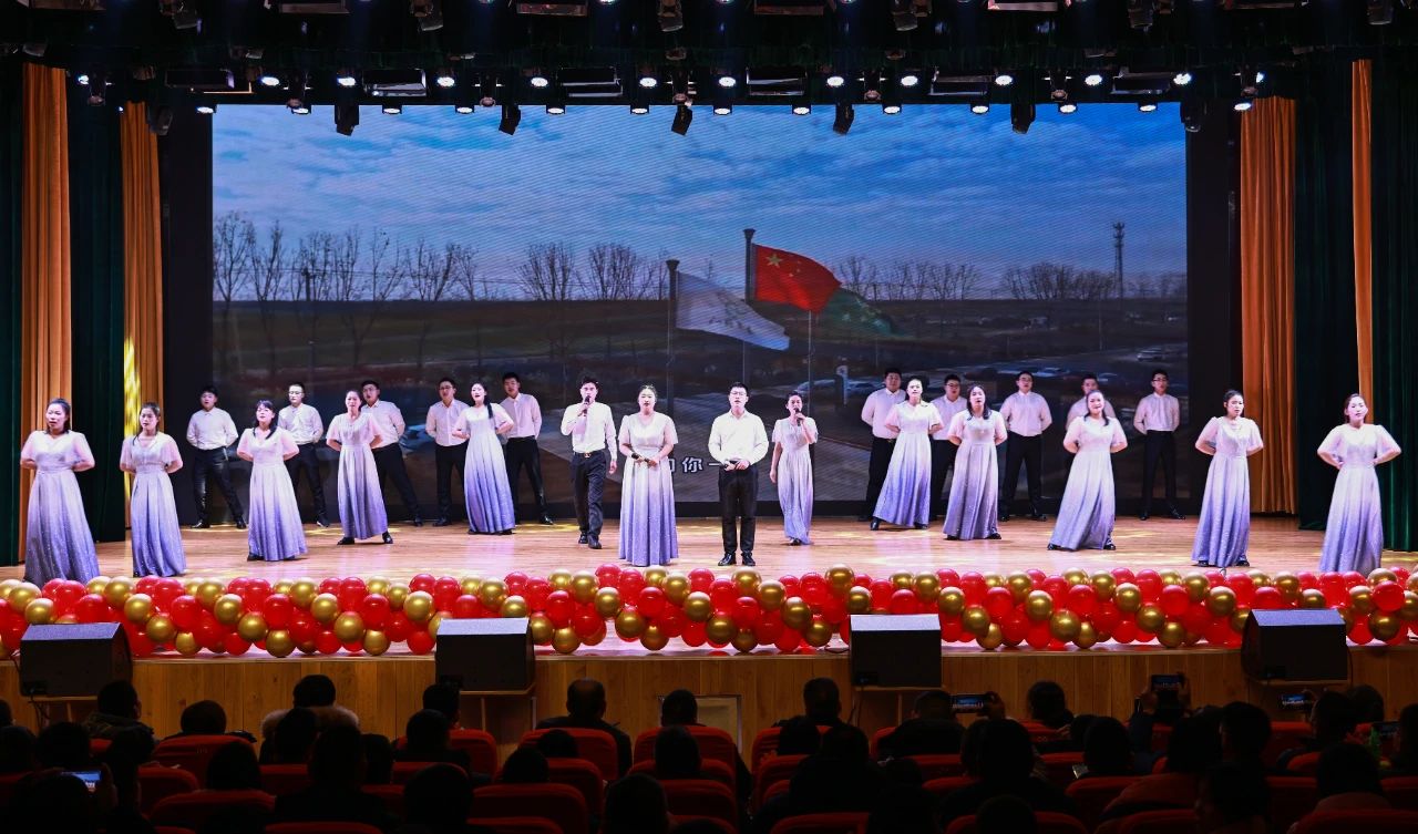 聯(lián)歡會上精彩紛呈,18個節(jié)目紛至沓來,為觀眾奉上了一場別開生面的文化盛宴。舞蹈《新年好》《相親相愛》《茉莉花》以貼合傳統(tǒng)節(jié)日的選曲營造節(jié)日的喜慶氛圍,以優(yōu)美的旋律和動人的舞姿為觀眾帶來視覺與聽覺的雙重享受。歌曲《我的太陽和組曲》《光輝歲月》《青花》《壯志在我胸》《和你一樣》《紅日》《大地》的演唱者們在聯(lián)歡會的舞臺上盡情地展現(xiàn)自我。小品《你有我也有》以詼諧幽默的劇情向觀眾展現(xiàn)了建設(shè)新農(nóng)村、拉近城鄉(xiāng)差距的美好愿景,小品《社區(qū)說反詐》生動幽默的對白讓人忍俊不禁,也表明了社區(qū)職工堅定做好反詐工作的決心。串燒《換大米進行曲》《如愿》以強烈的視聽沖擊力,一次次將觀眾帶入“沉浸式”欣賞佳境。朗誦《我的東辛我的家》,一聲聲富有激情的朗誦,透露出東辛人對這片土地深沉的愛。情景劇《我的青春在水產(chǎn)》用獨特的表演方式,為觀眾展現(xiàn)了東辛水產(chǎn)人的工作狀態(tài)與責任擔當。音樂快板《東辛走向新輝煌》以快板這種傳統(tǒng)說唱藝術(shù)形式為載體,展現(xiàn)出東辛人奮發(fā)向上的精神和對農(nóng)場未來的美好期待。表演中黨委領(lǐng)導還分四輪為現(xiàn)場觀眾抽取新春禮包,歡聲笑語延綿不絕,伴隨著熱烈的氣氛和如潮的掌聲,聯(lián)歡會在集體大合照中圓滿落下帷幕。