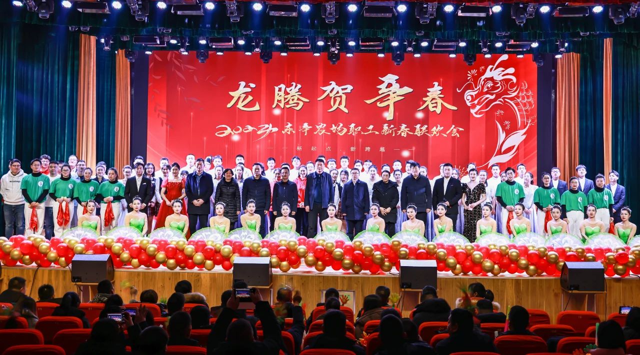 聯(lián)歡會在舞蹈《龍騰盛世》表演中拉開序幕,震撼人心的開場舞以明快的節(jié)奏、喜慶的旋律迅速點燃了全場觀眾的熱情,舞者青春洋溢、朝氣蓬勃的舞姿引得臺下掌聲不斷。開場舞畢,農(nóng)場公司黨委書記、董事長趙志發(fā)表致辭,向大家送上節(jié)日問候和衷心祝福。過去的一年,是我們克難攻堅、放手發(fā)展的一年,是我們統(tǒng)籌謀劃、負重前行的一年,是我們突破瓶頸、躍層升級的一年。2023年,最鮮明的是政治建設(shè)提上新高度,最喜人的是產(chǎn)業(yè)轉(zhuǎn)型取得新成效,最欣慰的是民生事業(yè)取得新改善,最振奮的是生態(tài)建設(shè)有了新突破,最難得的是深化改革邁出新步伐,最扎實的是從嚴治黨實現(xiàn)新提升。成績的取得,得益于集團公司和農(nóng)場公司黨委的正確領(lǐng)導及各界朋友的大力支持,得益于全場上下齊心協(xié)力、團結(jié)奉獻、真抓實干,得益于大家攜手奮進、通力合作和辛勤工作。2024年,我們將迎來更加廣闊的市場機遇和更為激烈的競爭環(huán)境,要堅持穩(wěn)中求進、以進促穩(wěn)、先立后破,以更加堅定的決心,更加務(wù)實的態(tài)度,踐行綠色發(fā)展理念,優(yōu)化產(chǎn)業(yè)結(jié)構(gòu),深化改革創(chuàng)新,推動經(jīng)濟穩(wěn)健增長、可持續(xù)發(fā)展。要賡續(xù)“團結(jié)拼搏、求實創(chuàng)新”的企業(yè)精神,以更高的熱情和更強的責任心,攜手共創(chuàng)新的輝煌,譜寫新的華章!