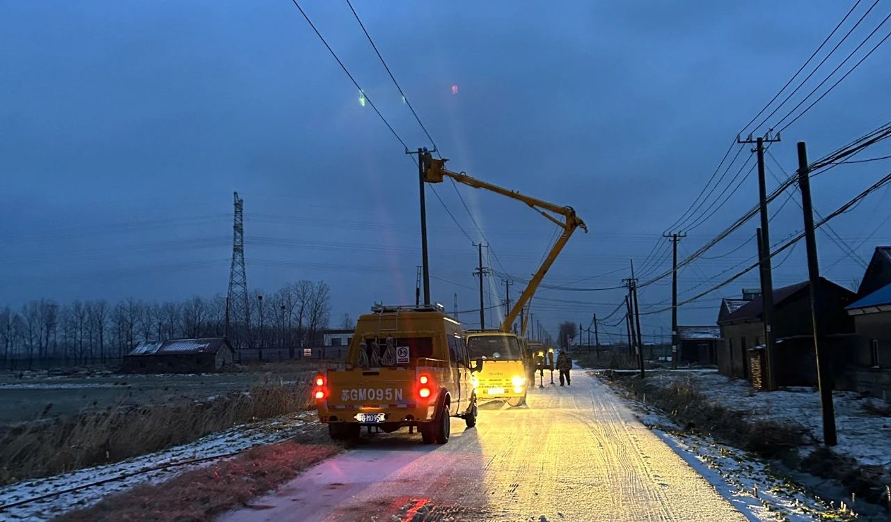 故障就是命令。凱惠電力公司搶修人員接到指令后,緊急集合,相繼出動20余人,頂著刺骨的寒風,冒著風雪奔赴現場,連夜施工、巡線、查找故障點。凜冽的寒風中,電線桿上早已結上了薄冰,雖然有完備的爬桿工具作為輔助,搶修人員依然是爬一步、滑半步,寸步難行。隨著時間的流逝,搶修人員的體力消耗很大,呼出的熱氣掛在眉毛上凝成冰霜,舉著用具的手也早已凍僵,雪夜的寒風打在臉上仿佛刀割一般,耳朵也被凍得近乎失去知覺,但他們仍堅持全力搶修,保障用電安全可靠運行。從深夜到晌午,從夜幕到日出,在歲月靜好的背后,是他們一直負重前行。終于在21日上午10點順利完成搶修任務,在寒冷的冬日里為五百余戶東辛人及時送上溫暖和光明。