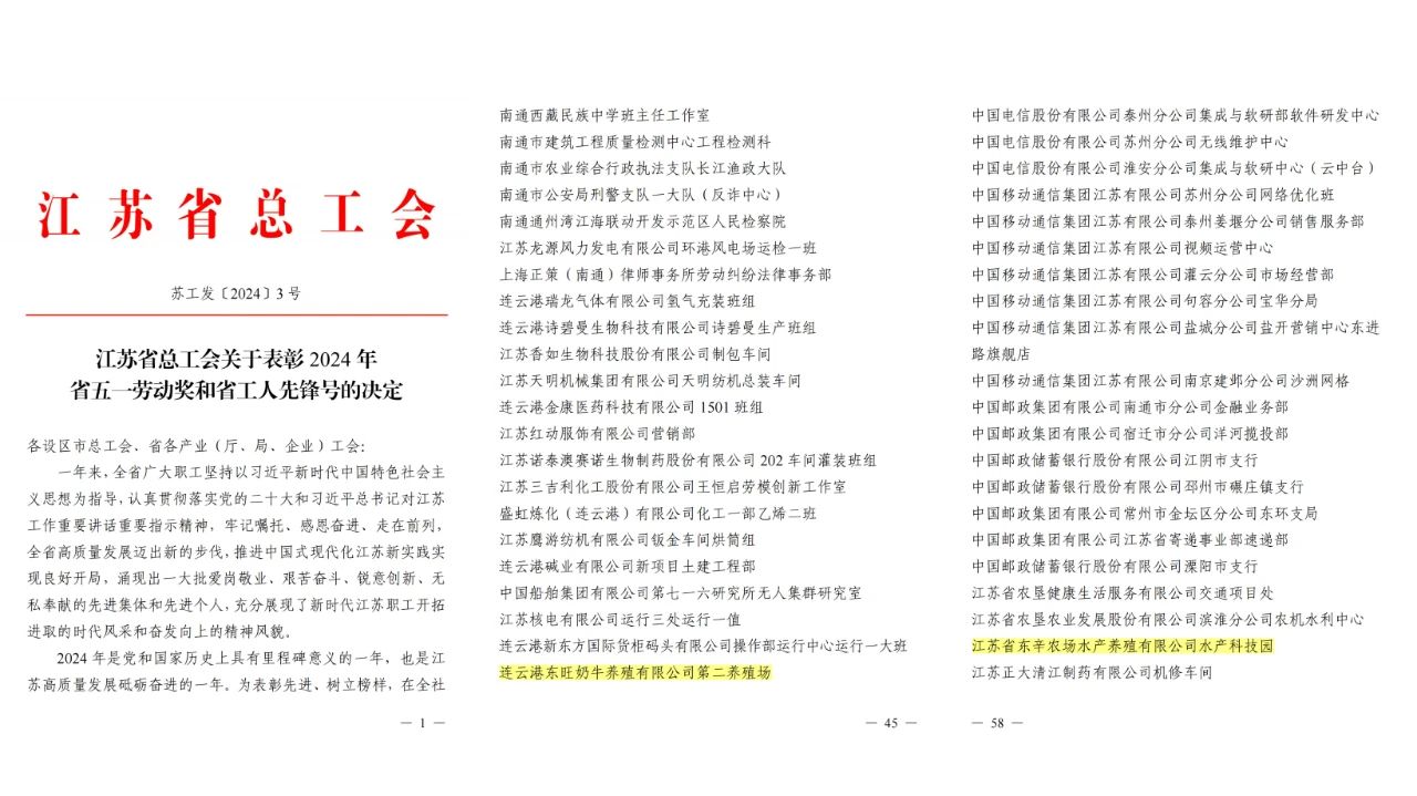 近日,江蘇省總工會下發(fā)《關(guān)于表彰2024年省五一勞動獎和省工人先鋒號的決定》,東辛東旺奶牛公司養(yǎng)殖二場、水產(chǎn)公司科技園雙雙榮獲“江蘇省工人先鋒號”榮譽稱號!