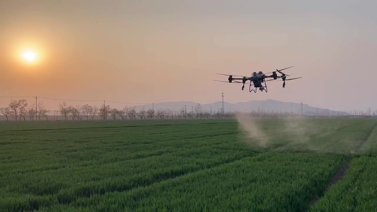 在農(nóng)牧中心小麥田里,1.3萬畝小麥長勢良好,隨著春風吹拂,泛起陣陣碧色麥浪。一臺臺專業(yè)植保無人機在麥田上空來回飛行,開展飛防作業(yè)。為保證防治效果,植保無人機畝用水量3L以上,噴幅5-5.5m,飛行速度5m/s,飛行高度2.5m,霧滴直徑130μm。技術(shù)員按比例現(xiàn)場精準配比藥水,確保防控效果。對于不方便組織開展飛防作業(yè)的地塊,組織人員人工噴灑農(nóng)藥,確保做到小麥赤霉病農(nóng)藥噴灑作業(yè)無死角。