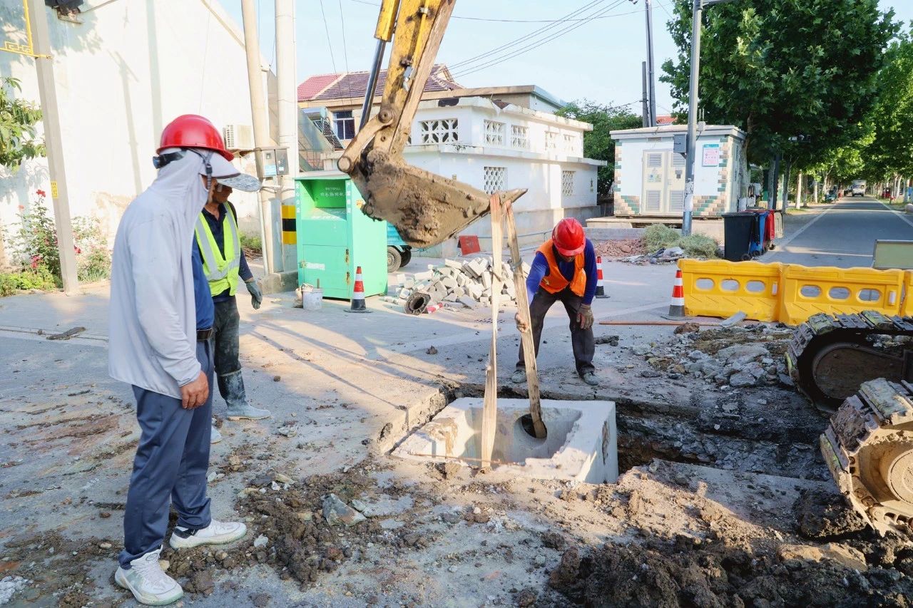 ? ? ? ?施工現(xiàn)場,機械馬力全開,鏟車穿梭、機聲轟鳴,各個環(huán)節(jié)井然有序。走進(jìn)水環(huán)境綜合整治工程施工圍蔽點,一個直徑1.5米、深達(dá)3.2米的大坑映入眼簾,三四名工人在馬不停蹄地搬運污水管網(wǎng)材料。這是工業(yè)路污水主管網(wǎng)建設(shè)攻堅的最后100米,管道鋪設(shè)已完成1900米,騎馬井沉井過半,按照每天沉井1-1.5個計算,1個月內(nèi)可沖刺完成最后的主管道施工。安全員時刻緊盯現(xiàn)場,保證安全文明施工。