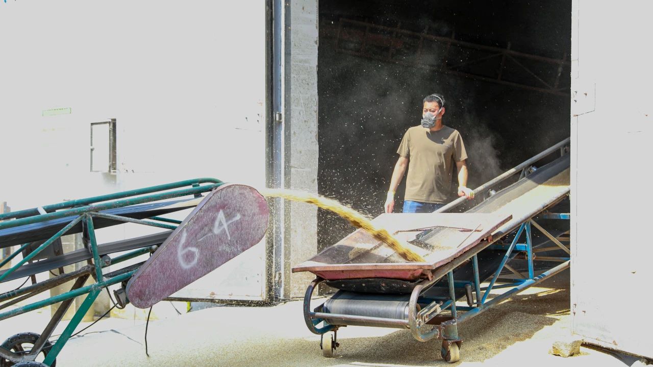 除夏糧搶收,糧食烘干也是保障糧食品質(zhì)、確保糧食豐收的關(guān)鍵。走進(jìn)供應(yīng)貿(mào)易部烘干現(xiàn)場(chǎng),滿(mǎn)載著剛收獲小麥的運(yùn)糧車(chē)一輛輛駛?cè)氪箝T(mén),過(guò)磅、卸糧、烘干、采樣化驗(yàn)、出倉(cāng)入庫(kù)……“轟隆隆,轟隆隆......”烘干房內(nèi)機(jī)器轟鳴,傳送帶源源不斷地將小麥輸送至烘干機(jī)內(nèi)進(jìn)行烘干作業(yè),后通過(guò)傳輸帶直接進(jìn)入糧倉(cāng)儲(chǔ)存。據(jù)悉,東辛10條烘干線(xiàn)24小時(shí)開(kāi)足馬力工作,日烘干量達(dá)4640噸。