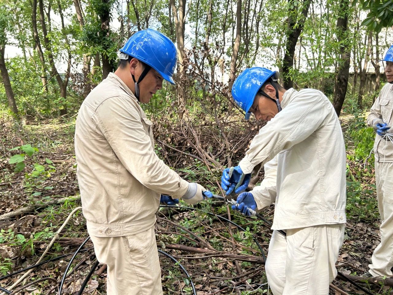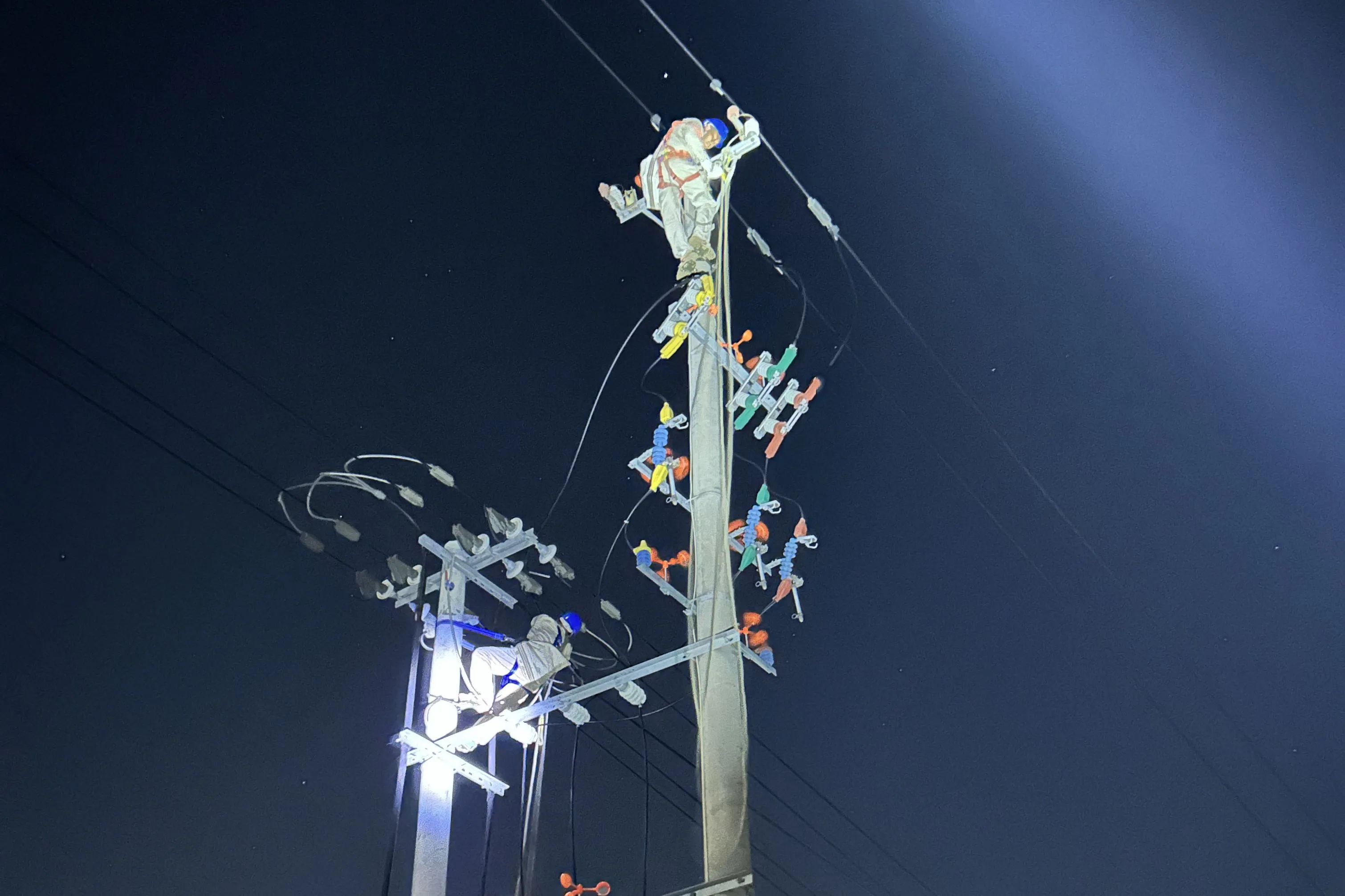 ?17日19點(diǎn)20分,搶修隊(duì)伍順利抵達(dá)常熟市支塘鎮(zhèn)支新村。正值中秋團(tuán)圓夜,他們無(wú)暇整頓歇息,立刻投入到這場(chǎng)緊急的電力救援行動(dòng)中。由于支新村所處區(qū)域地勢(shì)較低,受災(zāi)環(huán)境復(fù)雜,隊(duì)員們涉水蹚泥地查找線路、排除故障,時(shí)不時(shí)被倒地的灌木、斷桿攔住去路,有的地方無(wú)法借助機(jī)械,完全依靠人工拉拽將倒地的線桿一一扶起,早已分不清大家臉上的是雨水還是汗水?!叭烤€路測(cè)試完畢,具備送電條件!”18日凌晨1時(shí)30分,經(jīng)過(guò)近6個(gè)小時(shí)的搶修,完成常熟市支塘鎮(zhèn)支新村倒線斷桿故障搶修3處,處理緊急缺陷10余處,已停電40多小時(shí)的400余戶居民終于迎來(lái)了光明。