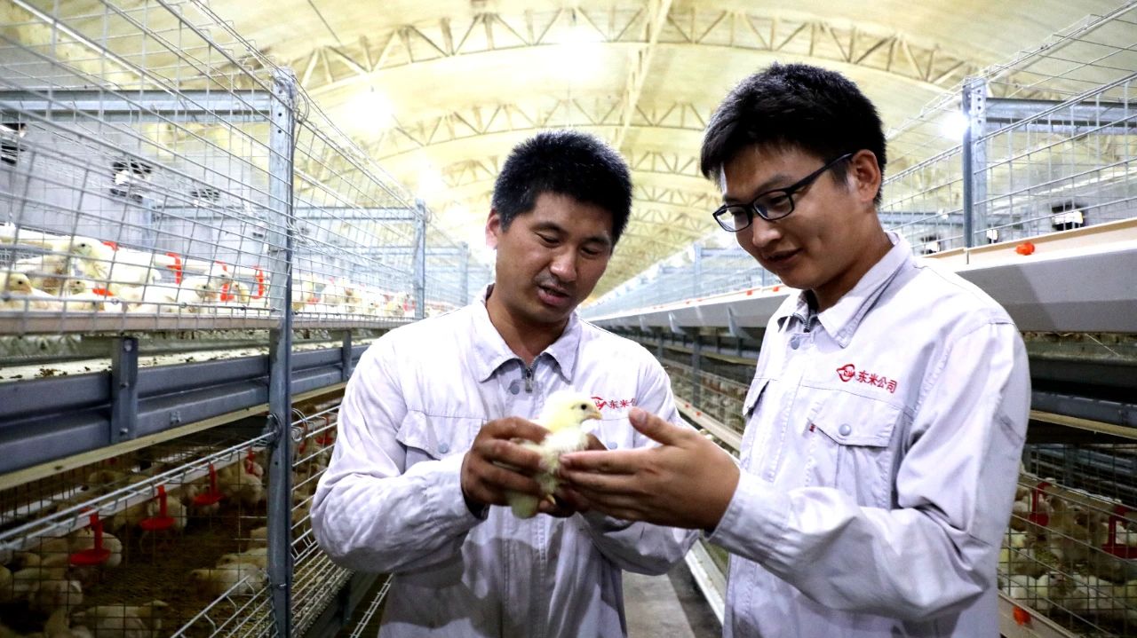 23點(diǎn)8分,肉雞分雛工作陸續(xù)開始,本次需要分雛的是25至30號(hào)這5棟雞舍,工人們提前將燈光調(diào)至昏暗模式,防止分雛時(shí)肉雞過(guò)于亢奮。只見工人們3人一組一一打開籠門,按照三層均放的分雛要求,從中層數(shù)出26只肉雞輕輕地抓到雞舍的底層。工人們?cè)诨璋档碾u舍中,憑借著多年的經(jīng)驗(yàn)和嫻熟的技巧工作著……“為了減少分雛工作對(duì)肉雞的損傷,分雛過(guò)程中大家要輕拿輕放,力爭(zhēng)做到零損傷零損耗。分雛過(guò)后,及時(shí)給肉雞補(bǔ)給電解多維或VC,提高肉雞抗應(yīng)激能力,同時(shí),加以飼料投喂保證肉雞采食?!睎|升雞場(chǎng)管理人員苗金凱表示。從晚上十一點(diǎn)直至凌晨一點(diǎn),終于順利完成了15萬(wàn)羽肉雞的分雛任務(wù)。