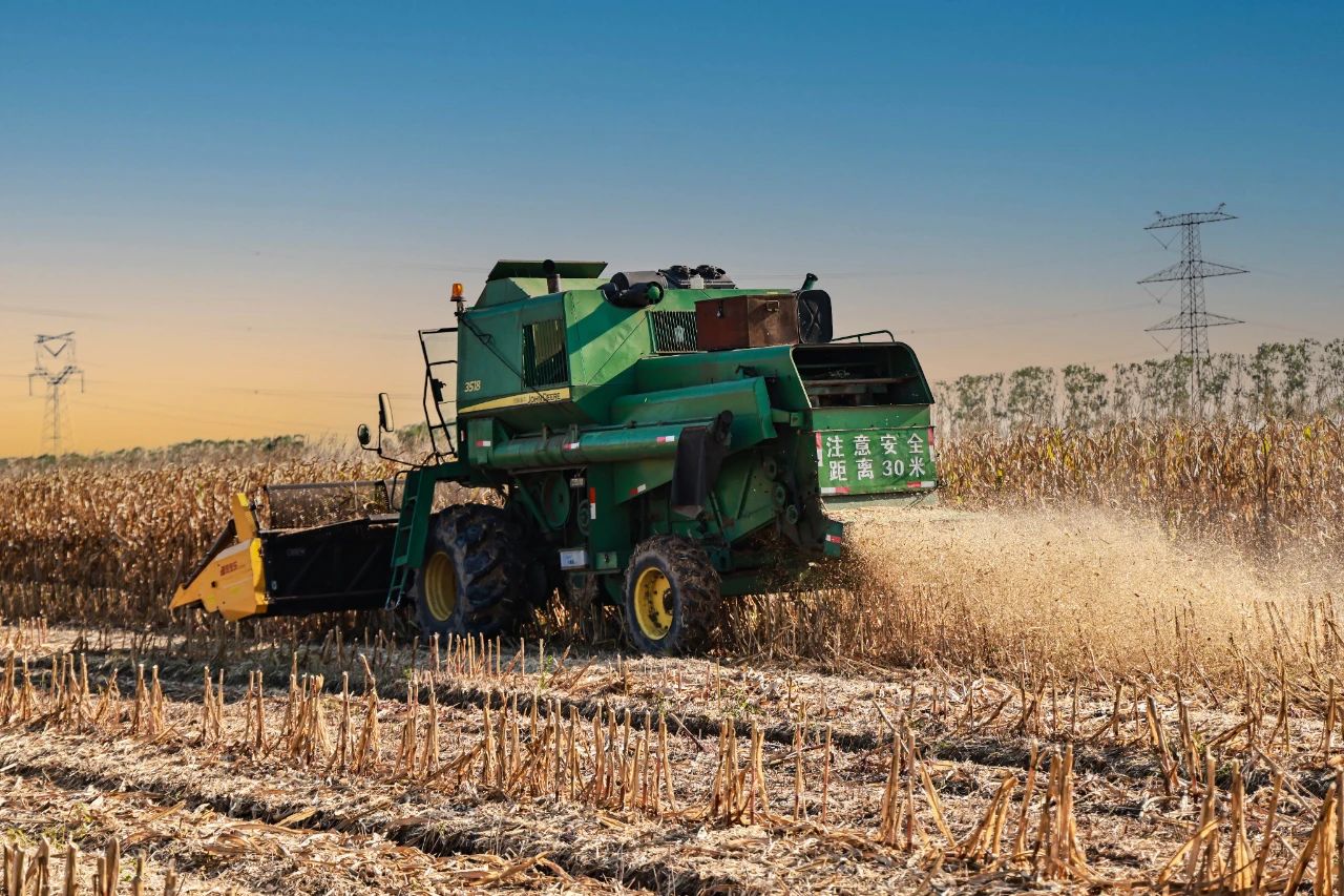 “今年東辛種植大豆玉米共計5.5萬畝,全場共計投入80臺大豆收割機、53臺玉米籽粒收割機?!鞭r(nóng)機服務(wù)總站負責人王峰介紹。在生產(chǎn)區(qū)秋收現(xiàn)場,農(nóng)機手們精準作業(yè),收割、輸送、脫?!麄€機收過程行云流水、一氣呵成。