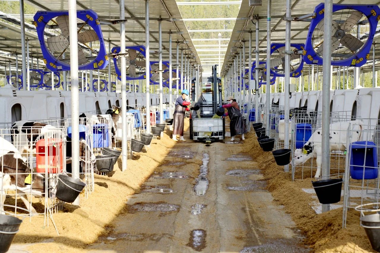 飼養(yǎng)團(tuán)隊(duì)通過(guò)系統(tǒng)學(xué)習(xí),熟練掌握科學(xué)喂養(yǎng)、防寒保溫、通風(fēng)環(huán)衛(wèi)、防疫消毒等方面的知識(shí),為奶牛飼養(yǎng)提供全方位、個(gè)性化的健康管理服務(wù)。在產(chǎn)犢護(hù)理方面,嚴(yán)格按標(biāo)準(zhǔn)化流程操作,從營(yíng)養(yǎng)配餐到環(huán)境控制,從健康監(jiān)測(cè)到產(chǎn)后護(hù)理,每一個(gè)環(huán)節(jié)都嚴(yán)格把控?!盃倥5氖沉繒?huì)隨著月齡逐漸增加,我們從最初的每天喂食6升奶逐漸增加到每天12升?!睜倥2扛辈块L(zhǎng)封昊旭介紹道,為了培養(yǎng)犢牛的瘤胃功能,喂養(yǎng)的時(shí)候還適時(shí)引入犢牛顆粒等固體飼料,在出生后的前2個(gè)月,奶和飼料的比例需要不斷調(diào)整,直至完全斷奶。九月出生的牛犢在飼養(yǎng)團(tuán)隊(duì)的精心照料下已茁壯成長(zhǎng),目前進(jìn)入斷奶期,陸續(xù)從犢牛島搬進(jìn)了牛舍“新家”。