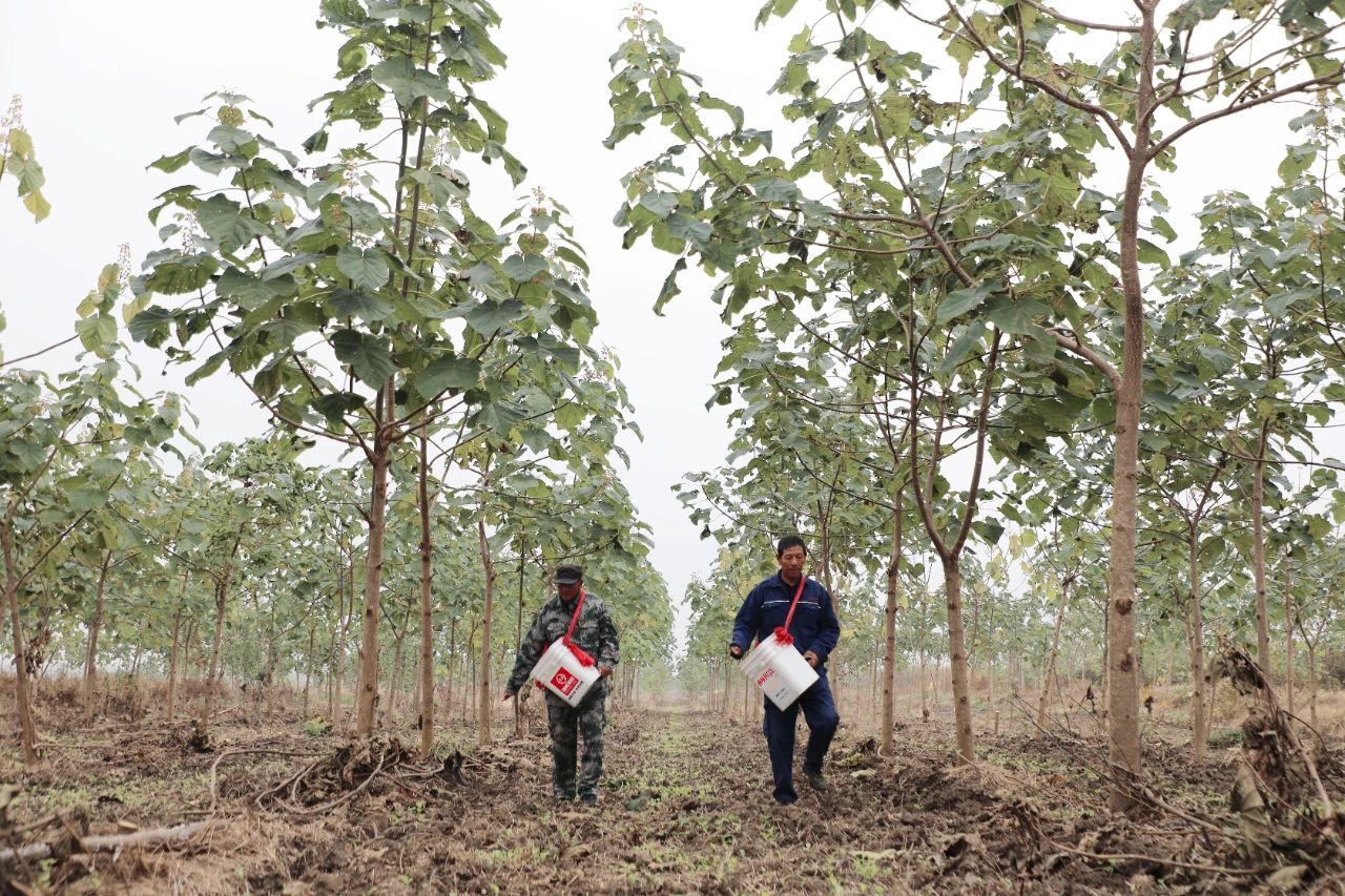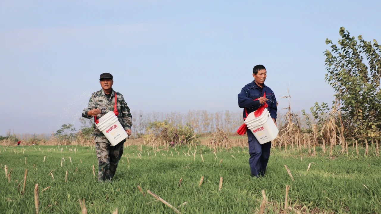 11月18日上午,在東辛埃河生產(chǎn)區(qū)37大隊(duì)南埃字河堆上,東農(nóng)物業(yè)公司外拓項(xiàng)目部負(fù)責(zé)人李東海正帶領(lǐng)2名工人緊張有序地給冬小麥?zhǔn)┓省!斑@里原先是撂荒、零散的河堆土地,俗稱‘拾邊田’,地勢條件差,分布零散,機(jī)械無法進(jìn)入,全部依靠人工進(jìn)行作業(yè)?!崩顤|海介紹說。
