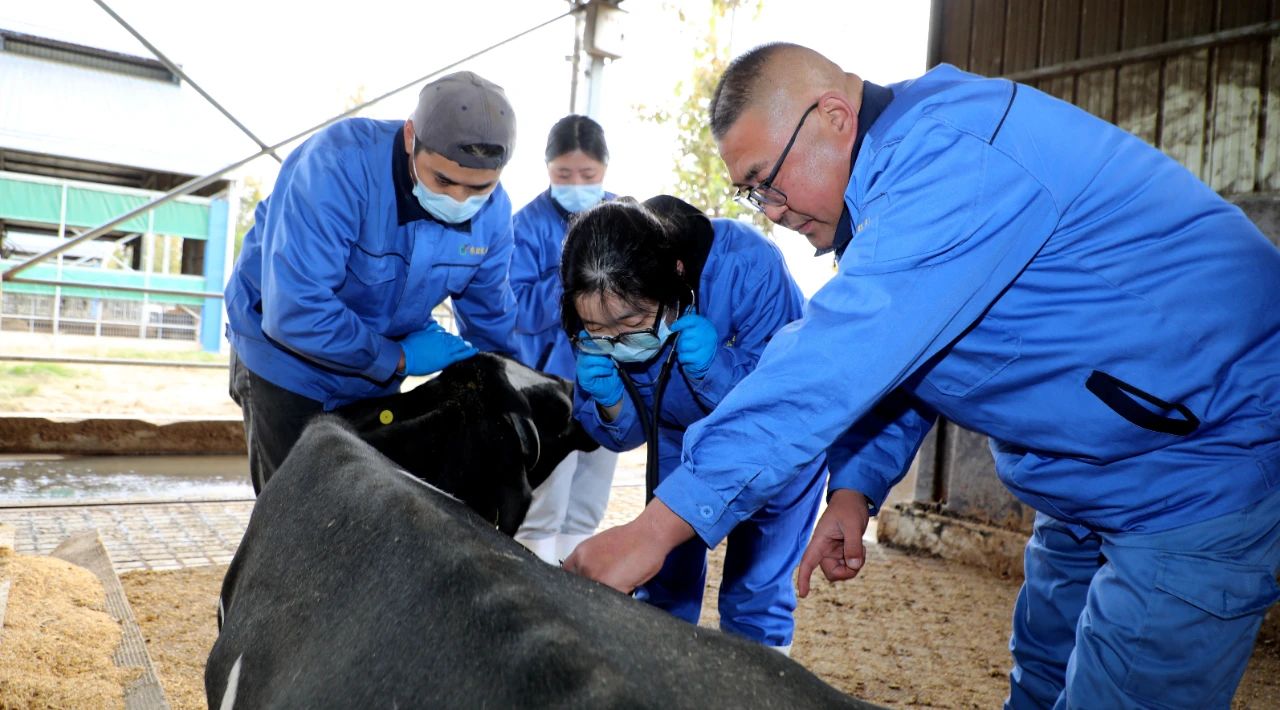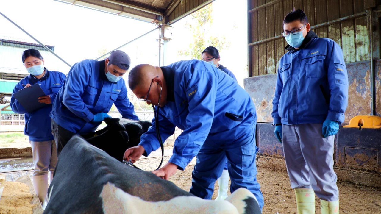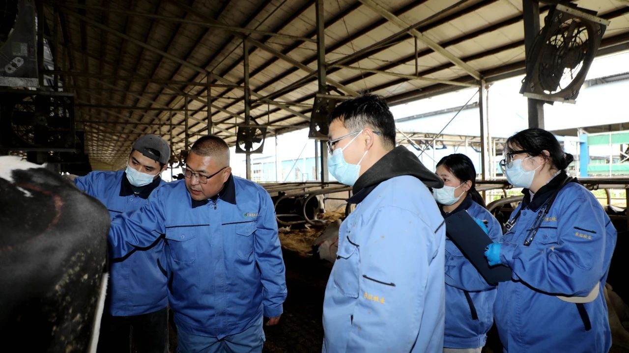 東旺奶牛公司生態(tài)養(yǎng)殖示范場存欄奶牛4800余頭,日常的奶牛管護(hù)、產(chǎn)后護(hù)理、轉(zhuǎn)群分群及病牛治療等工作任務(wù)十分繁重,獸醫(yī)組嚴(yán)格遵循“日巡查+周例會(huì)+月巡診”的工作機(jī)制,通過巡棚查看、巡診交流,全面了解掌握牛只的健康與成長狀況,做到有檢查、有治療、有回診,保障疫病防控和奶產(chǎn)品安全供給?!懊總€(gè)月,周主管都會(huì)定期帶我們進(jìn)行巡診,現(xiàn)場診斷指導(dǎo),我們的業(yè)務(wù)水平有了明顯提升,工作起來也更得心應(yīng)手了。”獸醫(yī)組工作人員楊華表示。