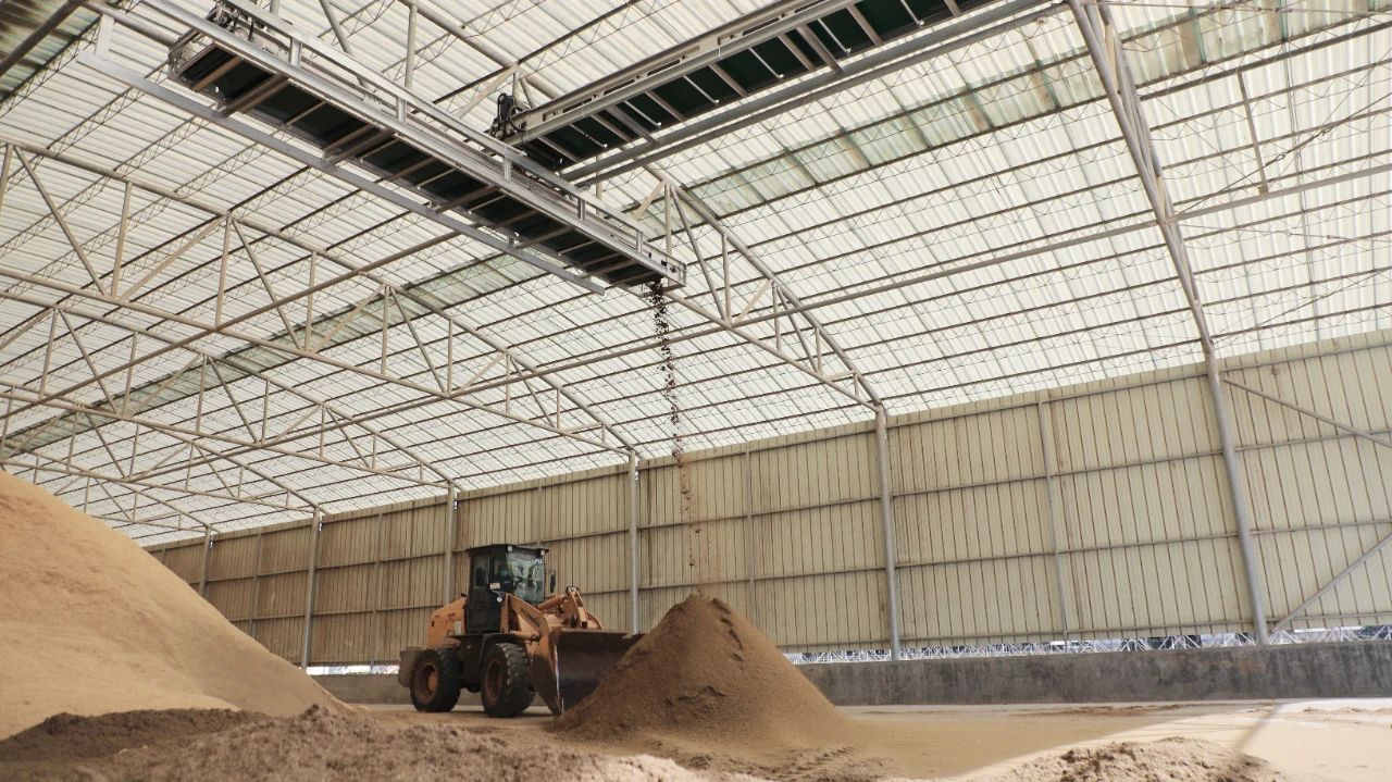 據(jù)了解,原先糞污進(jìn)入發(fā)酵罐經(jīng)壓榨烘干后,需要一輛鏟車(chē)、兩輛運(yùn)輸車(chē)和三名工人同時(shí)配合操作,才能完成干糞轉(zhuǎn)運(yùn)工作,且烘干車(chē)間出料口處狹窄,進(jìn)往車(chē)輛通行不便,不僅存在車(chē)輛駕駛安全隱患,還增加了運(yùn)輸成本和人力成本。為了徹底解決這一難題,公司根據(jù)生產(chǎn)實(shí)際,不斷研究調(diào)整改進(jìn)方案,進(jìn)一步優(yōu)化場(chǎng)區(qū)糞污處理設(shè)備之間的運(yùn)轉(zhuǎn)效能,最終確定在烘干車(chē)間和墊料庫(kù)之間加裝一套長(zhǎng)195米、寬0.6米的傳輸裝置,在裝置末端設(shè)置東西方向兩個(gè)出口,可以將干糞和濕糞分開(kāi)儲(chǔ)存堆放,便于晴好天氣關(guān)閉烘干機(jī)后傳輸濕糞自行晾曬,功能多、實(shí)用性強(qiáng),較好滿足生產(chǎn)需求。