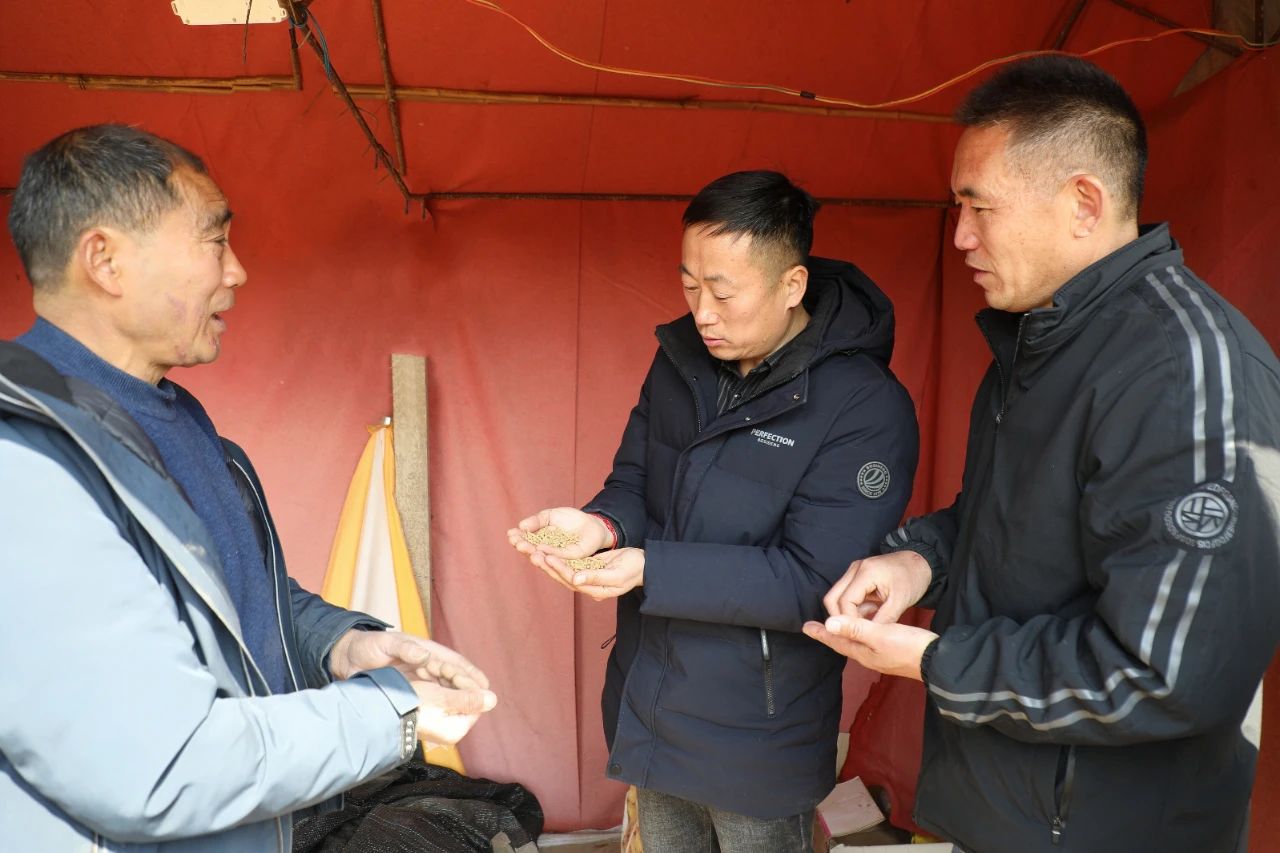 孫道鵬和沙鷗在與農(nóng)戶(hù)們交談中了解到,藍(lán)莓果樹(shù)喜酸性土壤環(huán)境,且為了提升果實(shí)口感,農(nóng)戶(hù)們會(huì)將豆粕和發(fā)酵后的大豆拌入土壤,但由于把握不好基肥和微量元素等添加量,且藍(lán)莓根系嬌嫩脆弱,很容易傷根,影響果園產(chǎn)量和種植戶(hù)收益。在聽(tīng)到農(nóng)戶(hù)訴求后,孫道鵬立即與沙鷗現(xiàn)場(chǎng)討論配方改良,根據(jù)黑林鎮(zhèn)土壤特性和藍(lán)莓生長(zhǎng)習(xí)性,決定在現(xiàn)有樣品中適當(dāng)添加菌劑和發(fā)酵過(guò)的顆粒大豆,使得改良后的藍(lán)莓專(zhuān)用肥更加符合農(nóng)戶(hù)需求。在種植大戶(hù)老徐的帶領(lǐng)下,周邊藍(lán)莓種植戶(hù)紛紛前來(lái)學(xué)習(xí)交流,并表示自愿劃出一塊區(qū)域用于后續(xù)有機(jī)肥改良試驗(yàn)推廣。