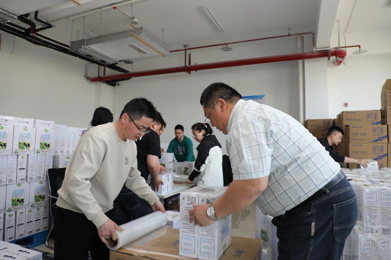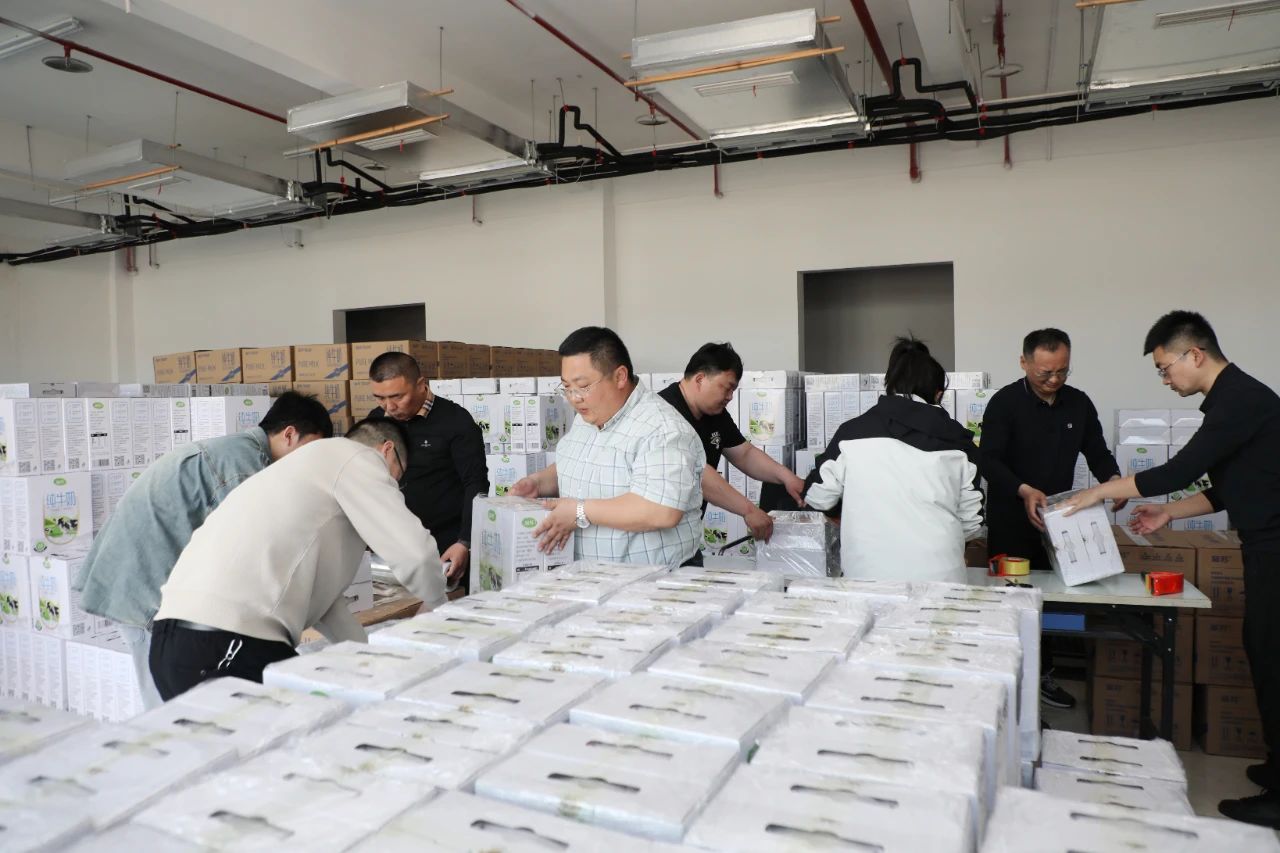 隨著抖音直播間訂單量的不斷攀升,冷鏈物流公司倉庫四周堆滿了即將打包發(fā)貨的“簡蘇”牛奶。十余名工作人員各司其職,膠帶封箱的“嘶嘶”聲、貨物搬運(yùn)的指令聲、團(tuán)隊(duì)協(xié)作的加油聲此起彼伏,奏響了一曲動(dòng)人的勞動(dòng)交響樂。質(zhì)檢員魏姐手持清單,嚴(yán)謹(jǐn)核對每一單信息:“百分百準(zhǔn)確率是我們的底線,這既是對‘簡蘇’品牌負(fù)責(zé),更是對消費(fèi)者負(fù)責(zé)?!彼贿吅蓑?yàn)一邊強(qiáng)調(diào)。