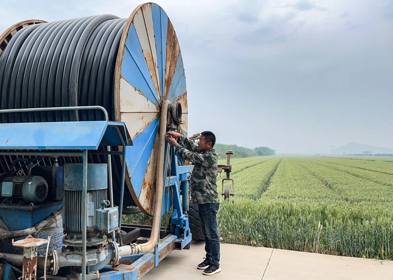 為了解決這一難題,史勇帶著隊員四處奔波,參觀學(xué)習(xí)、實地考察設(shè)備,拜訪了眾多供應(yīng)商,還向?qū)<艺埥獭K钪?,現(xiàn)成的設(shè)備無法滿足需求,只能自己動手改造。于是,他一頭扎進(jìn)工作中,從東辛到供應(yīng)商所在的城市來回奔波,一心琢磨如何讓噴灌機(jī)覆蓋更長的距離。電機(jī)如何安裝更合適、水泵怎么調(diào)整壓力、管道怎么布置更合理……這些問題他都和廠家技術(shù)人員反復(fù)研討,一次次試驗、改造,再試驗。經(jīng)過無數(shù)次的嘗試,終于,900米長的大型消納噴灌機(jī)成功問世。