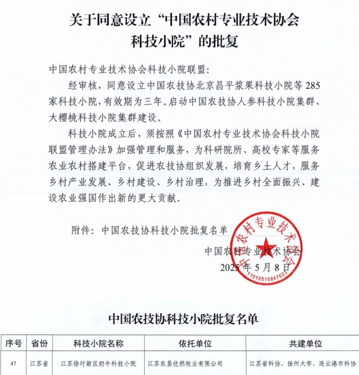近日,中國農(nóng)村專業(yè)技術(shù)協(xié)會(huì)正式批復(fù),同意設(shè)立“江蘇徐圩新區(qū)奶??萍夹≡骸?。這是東辛在農(nóng)業(yè)科技創(chuàng)新與產(chǎn)學(xué)研融合領(lǐng)域取得的又一重要突破。