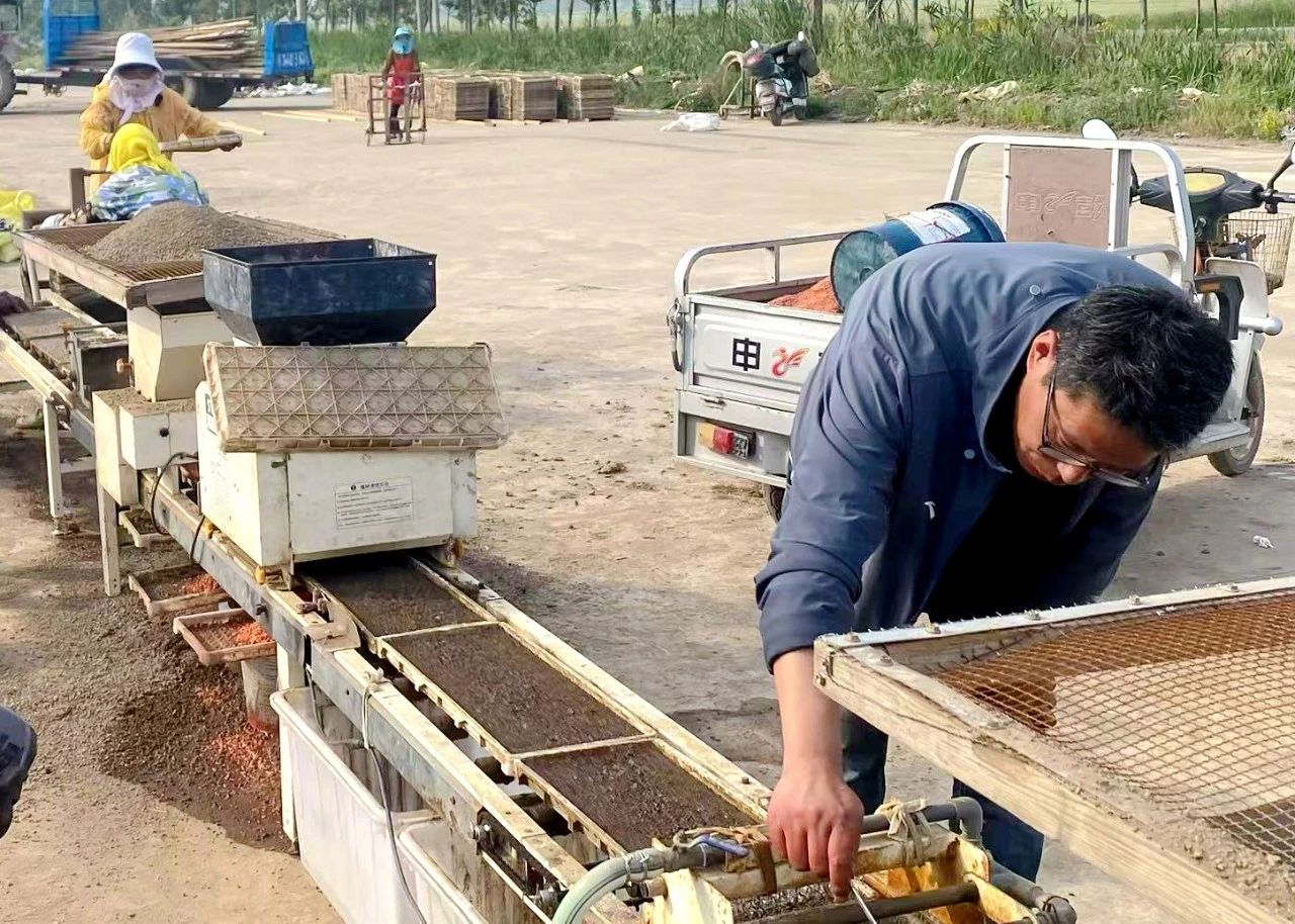 與此同時(shí),在新沂生產(chǎn)區(qū)落谷作業(yè)現(xiàn)場(chǎng),技術(shù)人員正對(duì)育秧流水線進(jìn)行細(xì)致檢查,確保設(shè)備運(yùn)行穩(wěn)定,并仔細(xì)查看稻種拌種質(zhì)量:“每粒種子都要均勻裹覆藥劑,否則可能影響成苗。”通過(guò)推廣“大壯苗”育秧技術(shù)和有氧恒溫浸種催芽技術(shù),精準(zhǔn)控制浸種時(shí)間和藥劑配比,秧苗的抗逆性和成活率顯著提升。
