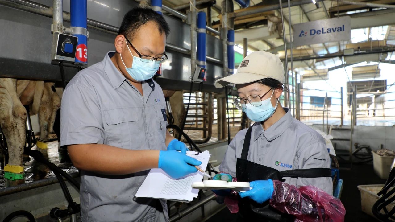 技術(shù)部為每頭奶牛建立了“健康檔案”,記錄體溫、采食量、產(chǎn)奶量等動(dòng)態(tài)數(shù)據(jù)。他們獨(dú)創(chuàng)“三查制度”,早查精神狀態(tài),午查進(jìn)食情況,晚查糞便形態(tài),實(shí)時(shí)追蹤牛群健康。遇到突發(fā)情況,技術(shù)部更是“沖鋒隊(duì)”。有天晚上一頭奶牛突發(fā)腹瀉,技術(shù)員連夜采樣檢測(cè),及時(shí)隔離治療,成功控制病情。“牛健康,奶才安全,這根弦我們時(shí)刻緊繃著。”技術(shù)部部長(zhǎng)趙文兵說(shuō)。