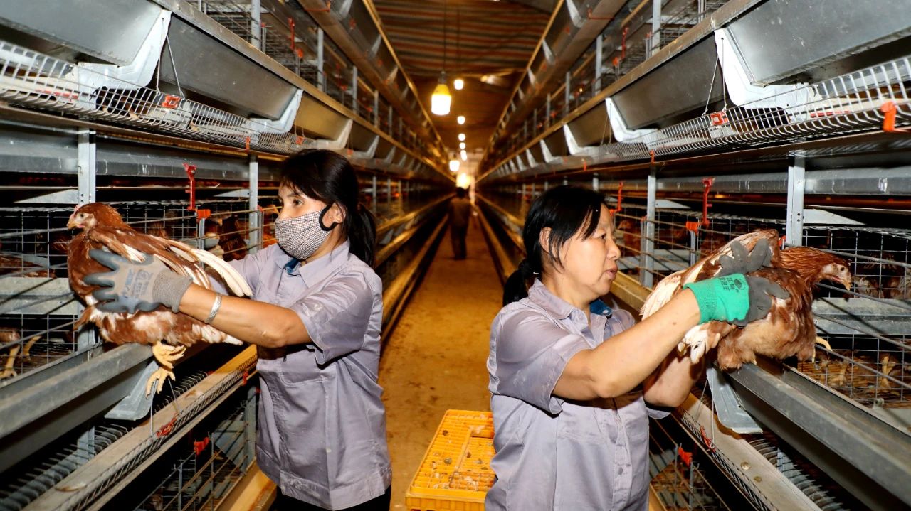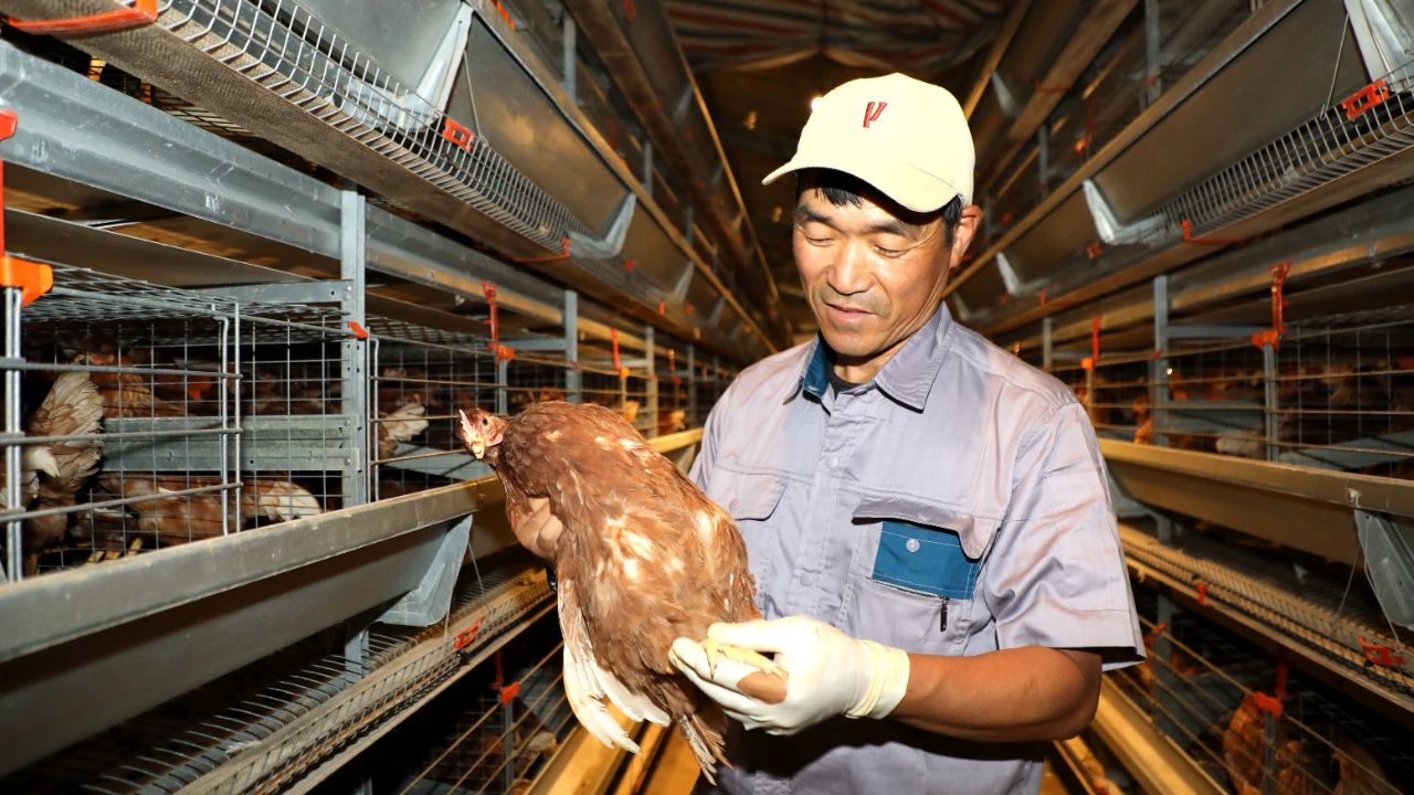 走進(jìn)4層5列的智能化雞舍,工人們正有條不紊地為蛋雞進(jìn)行體檢,并嚴(yán)格按照每籠6羽的標(biāo)準(zhǔn)分裝入籠。在溫濕度精準(zhǔn)調(diào)控、光照智能調(diào)節(jié)的舒適環(huán)境中,“新住戶”們很快適應(yīng),有的悠閑踱步,有的專注啄食,一片生機(jī)勃勃。