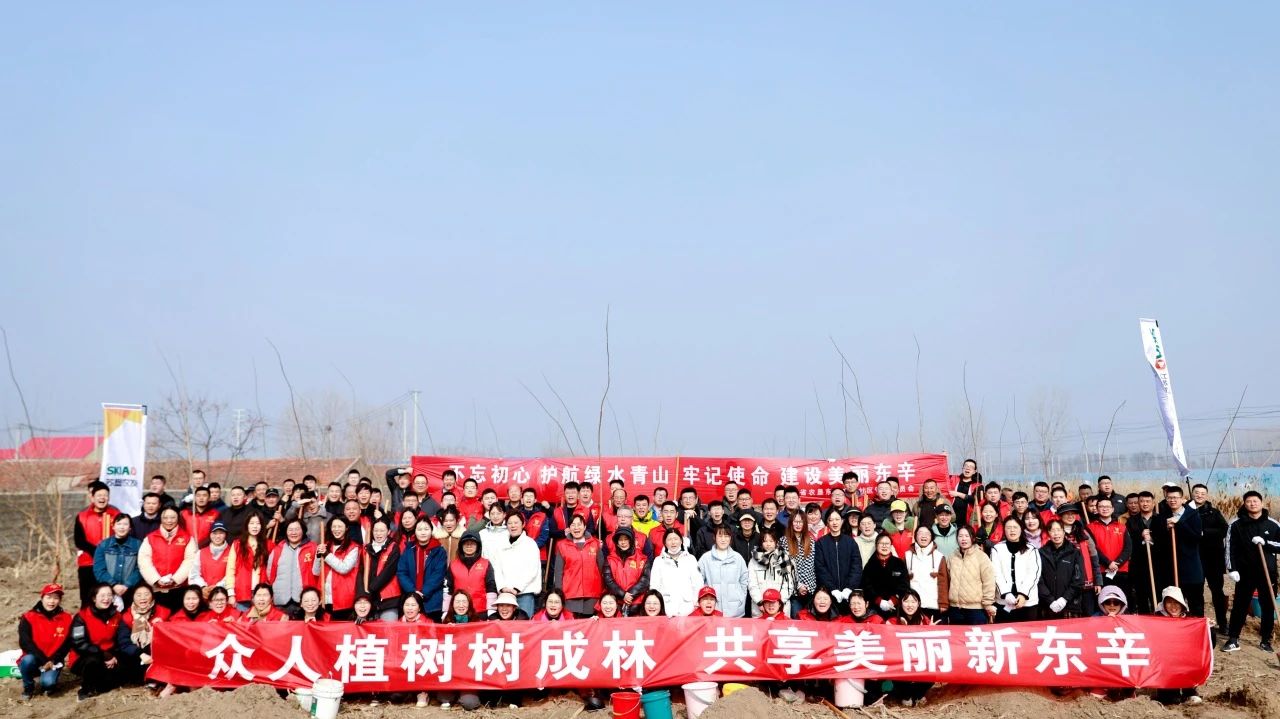 活動(dòng)現(xiàn)場(chǎng),志愿者們?nèi)迦艘唤M相互配合,種下一顆顆樹苗。揮鍬鏟土、扶苗填坑、培土澆水,一派熱火朝天的勞動(dòng)景象。本次義務(wù)植樹面積約53畝,1800株無(wú)絮意楊穩(wěn)穩(wěn)地扎根在濕潤(rùn)的土壤里,迎風(fēng)而立,煥發(fā)出春的生機(jī)和活力。