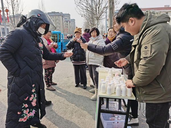 民諺說(shuō)“二月二,龍?zhí)ь^”。春回大地,萬(wàn)物復(fù)蘇,一切都是新的開(kāi)始!一大早,東旺鮮奶吧工作人員分別在機(jī)關(guān)門(mén)口、金色家園北門(mén)、綜合公共服務(wù)服務(wù)中心西門(mén)設(shè)置3個(gè)“酸奶免費(fèi)品嘗點(diǎn)”,邀請(qǐng)廣大職工居民現(xiàn)場(chǎng)免費(fèi)品嘗自主研發(fā)的各類(lèi)酸奶乳品。