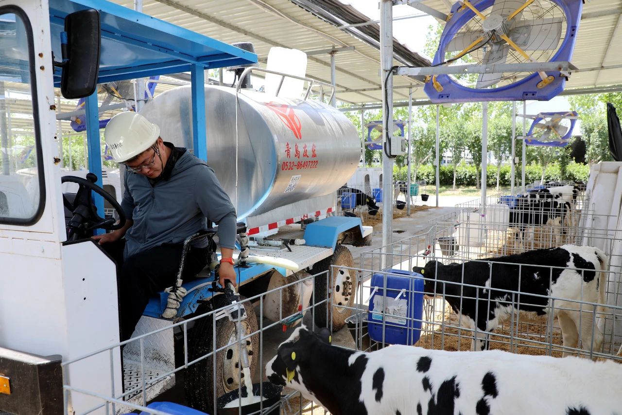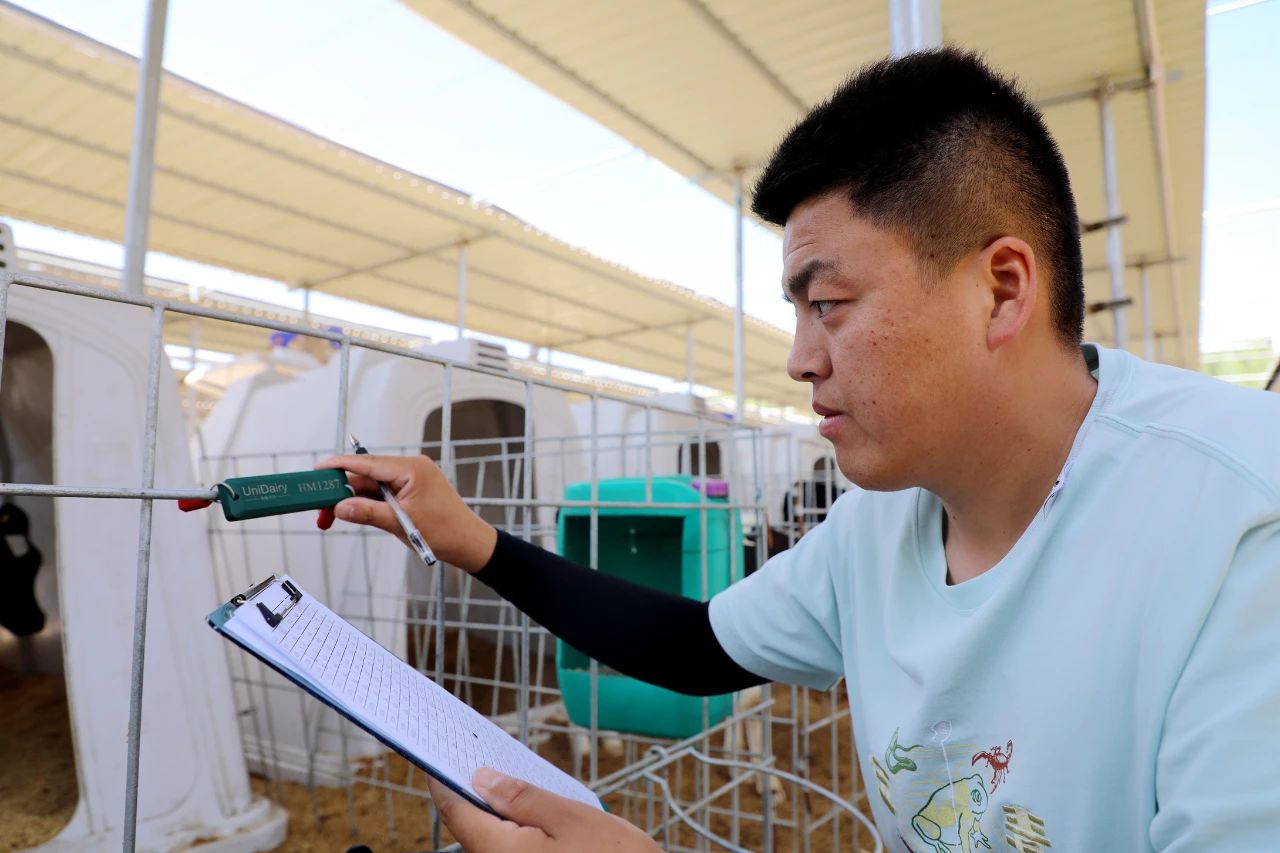 改裝喂奶車,奶量精確至0.1。原先喂奶車輛程序設(shè)置單一,每次喂奶需要根據(jù)犢牛月齡進行手動調(diào)整,且奶量精確度只能到個位數(shù)。在產(chǎn)犢高峰期,工人們每天早中晚三遍喂奶,需爬上爬下調(diào)整奶量數(shù)次,不僅大大降低了工作效率,而且還需要兩名工人才能完成喂奶工作。為更好地照料好每一頭小奶牛,公司犢牛飼養(yǎng)車間不斷優(yōu)化飼喂方式,做到科學(xué)精準飼喂。今年,公司主動出擊、攻克難題,經(jīng)過多次市場考察,與和牧興邦公司和山東青島友宏公司達成合作關(guān)系,根據(jù)牧場需求,個性化定制喂奶車,不僅實現(xiàn)“油改電”降低成本,還在喂奶車上加裝UniDairy系統(tǒng),將犢牛編號錄入系統(tǒng),奶槍掃碼即可根據(jù)犢牛月齡和健康指標自動控制出奶量,奶量精確至十分位,一個工人即可完成喂奶工作。精準飼喂系統(tǒng)的投入使用,在降低用工成本的同時,牧場犢牛日均增重首次突破1050g。