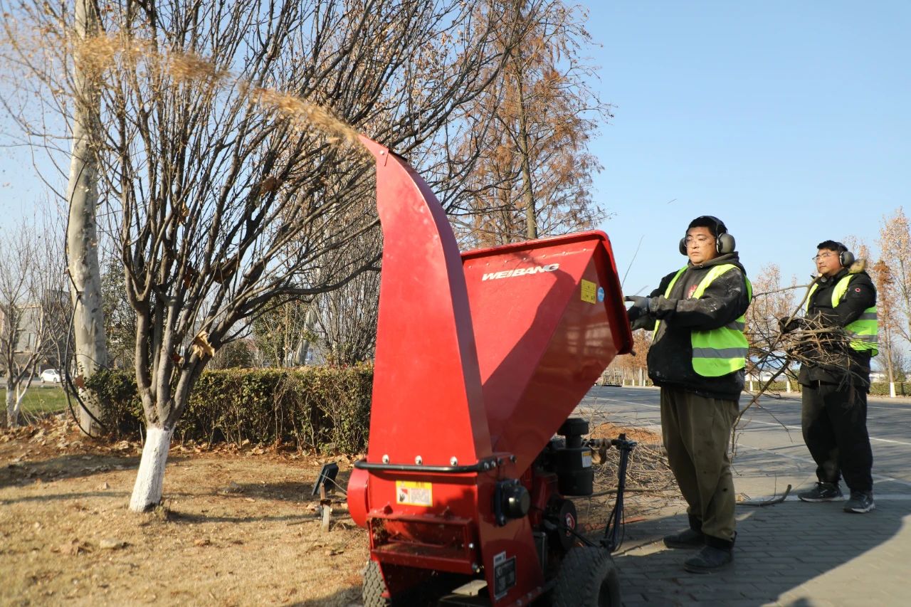 在東辛主支干道、公園苗圃等地,隨處可見“綠化人”忙碌的身影。他們將枯枝、落葉等綠化垃圾收集起來整理成堆,依次放入粉碎機(jī)內(nèi)粉碎,就地變成肥料撒到地里,一場碳循環(huán)綠色行動正在東辛如火如荼地進(jìn)行著……