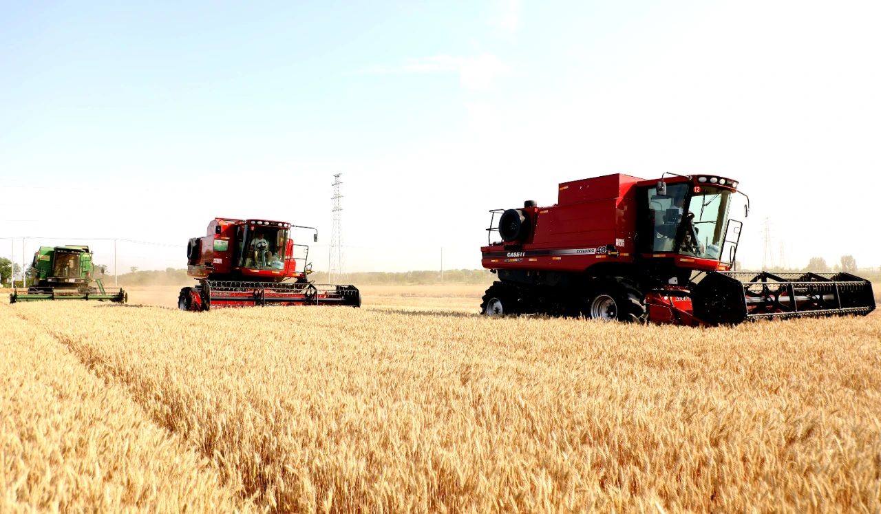走進(jìn)海北生產(chǎn)區(qū)11大隊麥田,飽滿的麥穗壓彎枝頭,三臺大型聯(lián)合收割機穿梭其中,精準(zhǔn)完成脫粒和秸稈粉碎等工序。生產(chǎn)區(qū)副主任侯志峰介紹:“今年海北生產(chǎn)區(qū)種植小麥1.23萬畝,已全部進(jìn)入收獲期,我們嚴(yán)格按照‘成熟一片、搶收一片’原則,調(diào)配12臺收割機不間斷輪班作業(yè),天氣晴好的情況下,預(yù)計一周左右完成全部收割任務(wù)。”