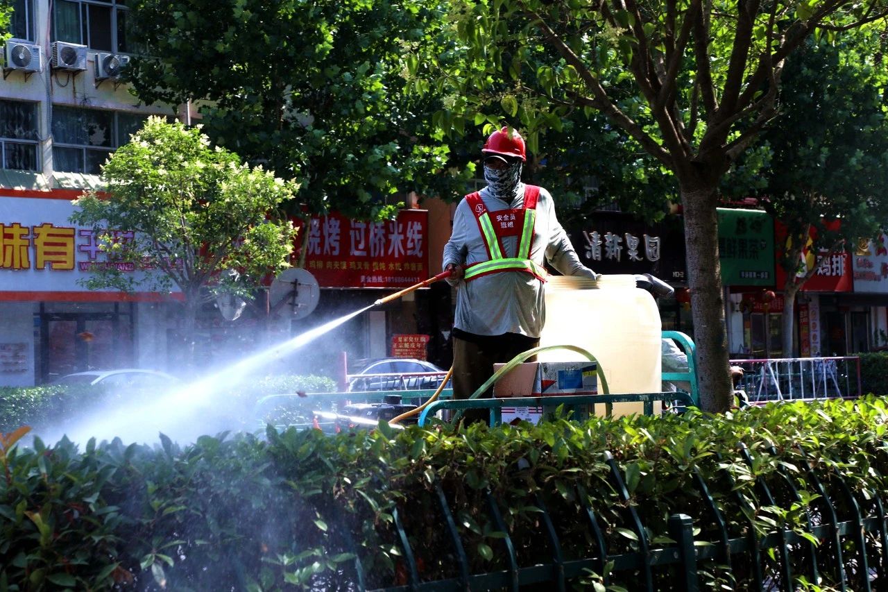 秉持“預(yù)防為主,綜合防治”的工作方針,科學(xué)組織,精準(zhǔn)施策,合理安排藥防時(shí)間,利用早、晚人流量較少的時(shí)間段,根據(jù)苗木生態(tài)習(xí)性、蟲(chóng)害發(fā)生規(guī)律及繁殖習(xí)性對(duì)癥下藥,選用低毒高效、綠色環(huán)保的藥劑,通過(guò)人工噴灑方式,對(duì)城鎮(zhèn)主次干道、公園廣場(chǎng)、居民區(qū)綠化苗木開(kāi)展藥物消殺防治,嚴(yán)防病蟲(chóng)害蔓延對(duì)苗木造成危害?!盀楸U陷爡^(qū)居民安全,打藥前,我們會(huì)提前對(duì)接各社區(qū)居委會(huì),叮囑居民近期出行佩戴好口罩,避免露天晾曬衣物、食物?!绷謽I(yè)公司負(fù)責(zé)人吳金輝說(shuō)道。
