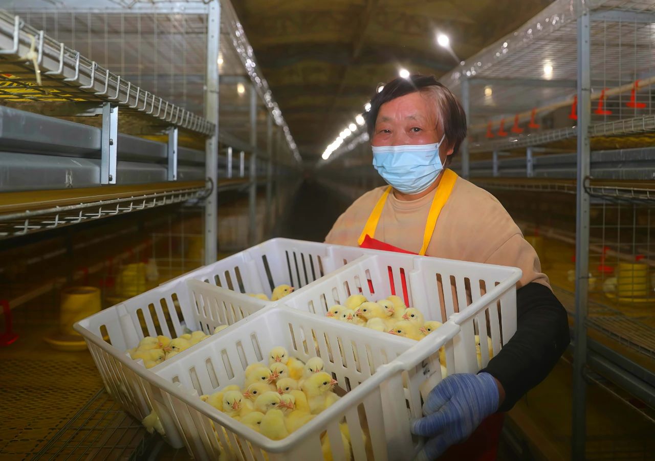 走進(jìn)現(xiàn)代化籠養(yǎng)雞舍,自動(dòng)化喂食飲水裝置應(yīng)有盡有,5列3層“樓房”整齊排布,籠內(nèi)已提前備好“營(yíng)養(yǎng)餐”,工人們對(duì)剛運(yùn)送進(jìn)來(lái)的雛雞逐一進(jìn)行“體檢”,并按照每籠82羽苗雞標(biāo)準(zhǔn),小心翼翼地分揀入籠。在34度恒溫的新家中,雛雞很快適應(yīng)新環(huán)境,開始愉快地自主進(jìn)食?!霸谶@里可以實(shí)現(xiàn)分區(qū)調(diào)節(jié)雞舍溫度、濕度、風(fēng)量等,各項(xiàng)關(guān)鍵數(shù)據(jù)一覽無(wú)遺。自從采用精準(zhǔn)數(shù)字化飼養(yǎng)模式后,不僅養(yǎng)雞效率提高了,還節(jié)約了人力成本,肉雞養(yǎng)殖更加科學(xué)高效。”技術(shù)員葉林來(lái)一邊介紹一邊熟練操作著智能化中控系統(tǒng)。